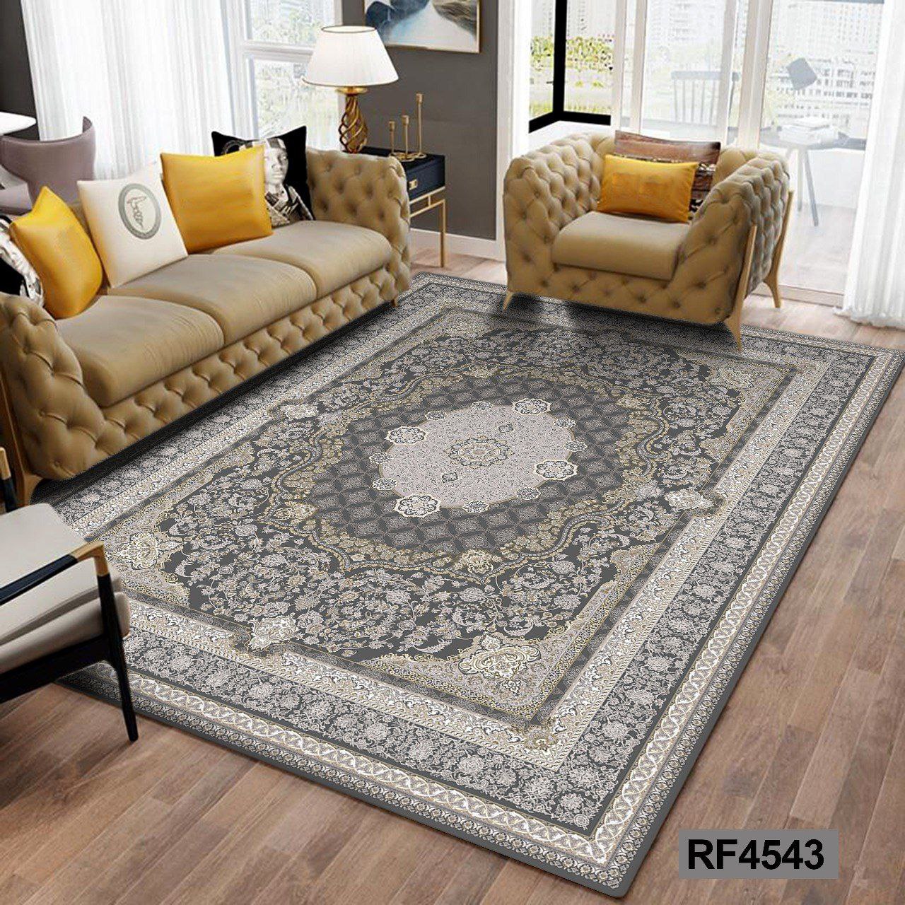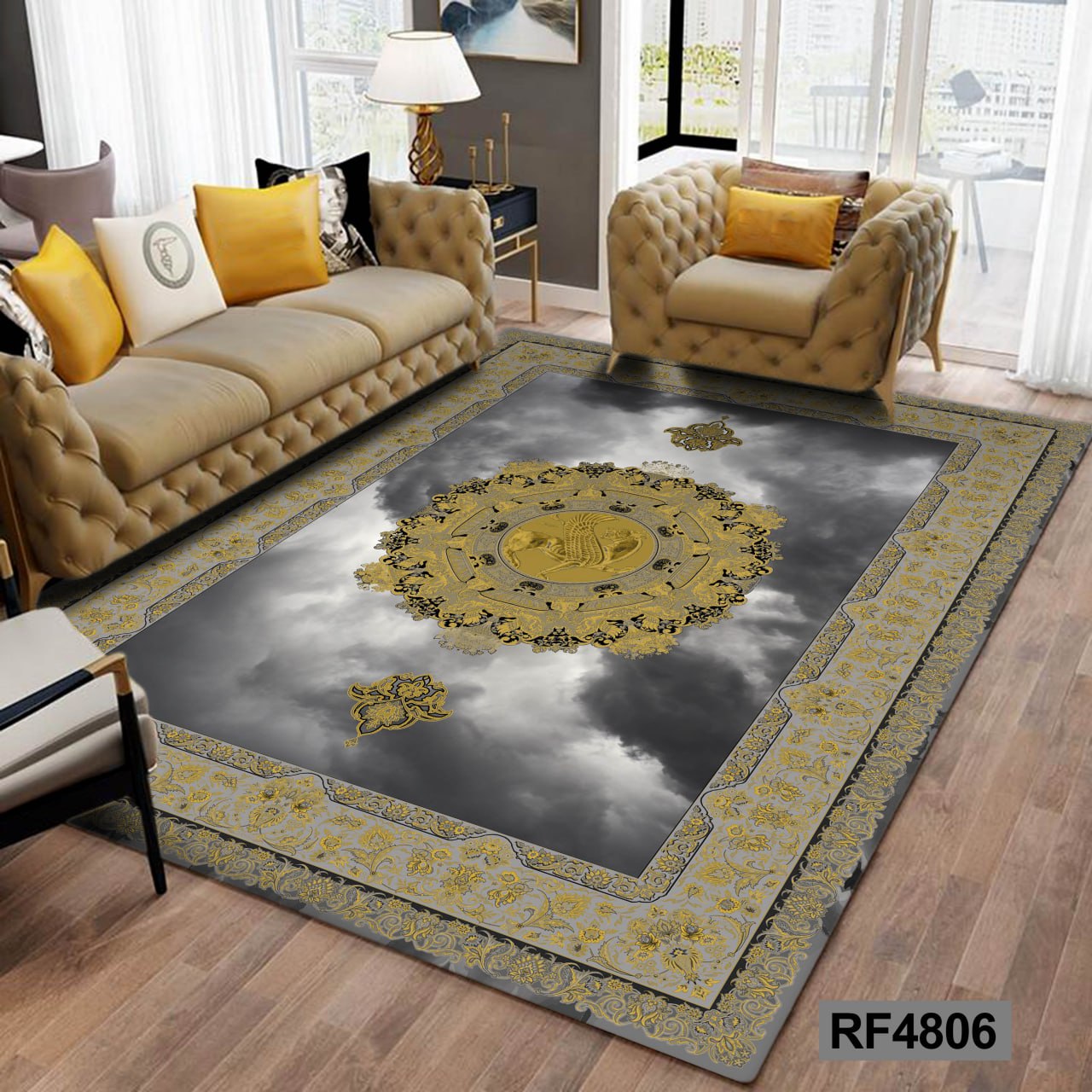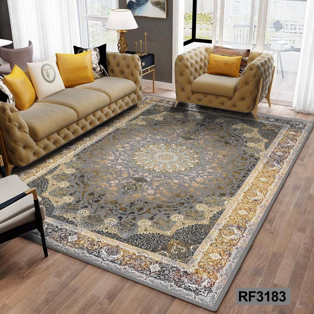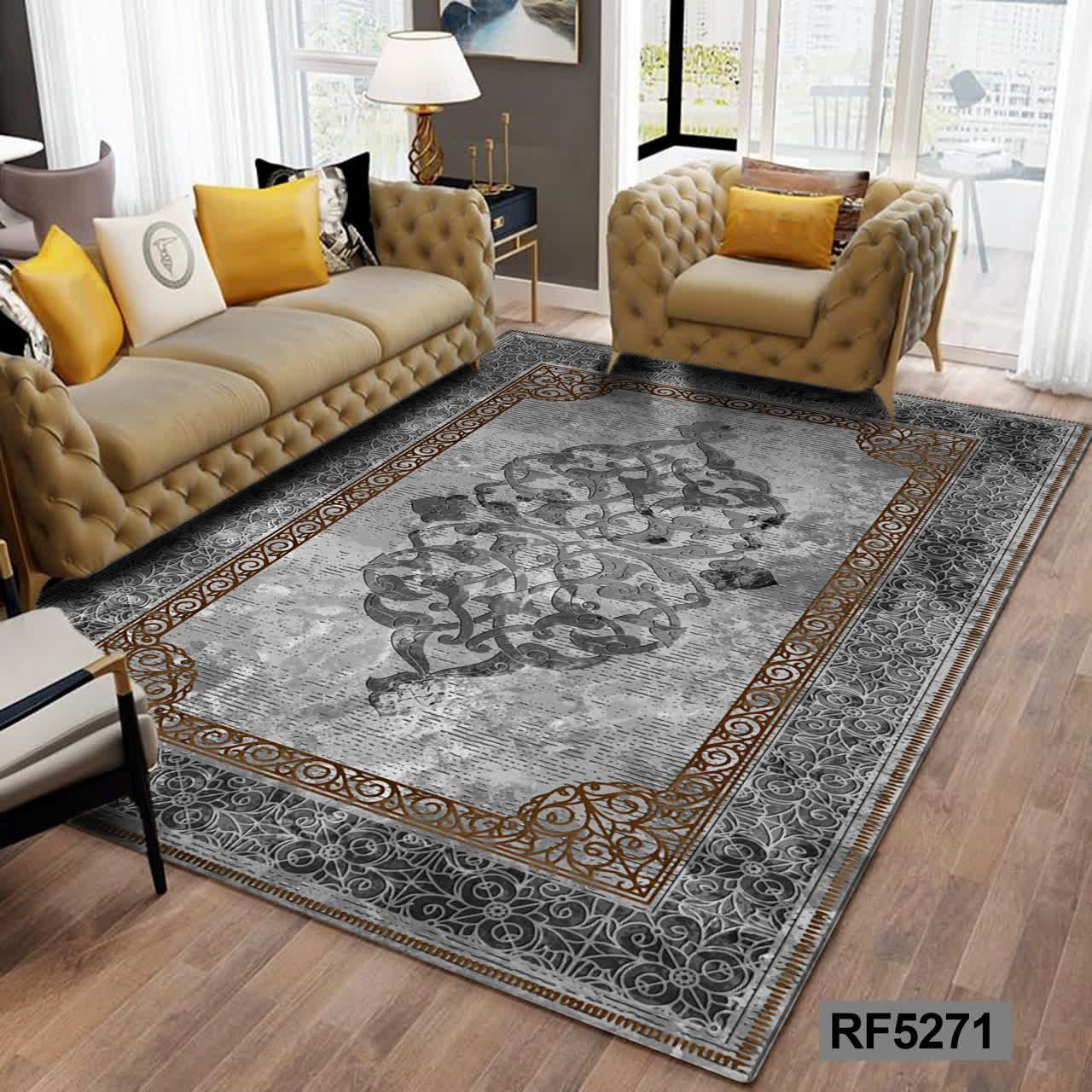 کاور مخمل کشدار فرش | طرح سنتی طوسی و طلایی کد RF3183