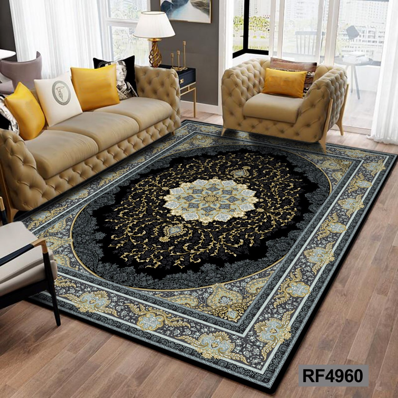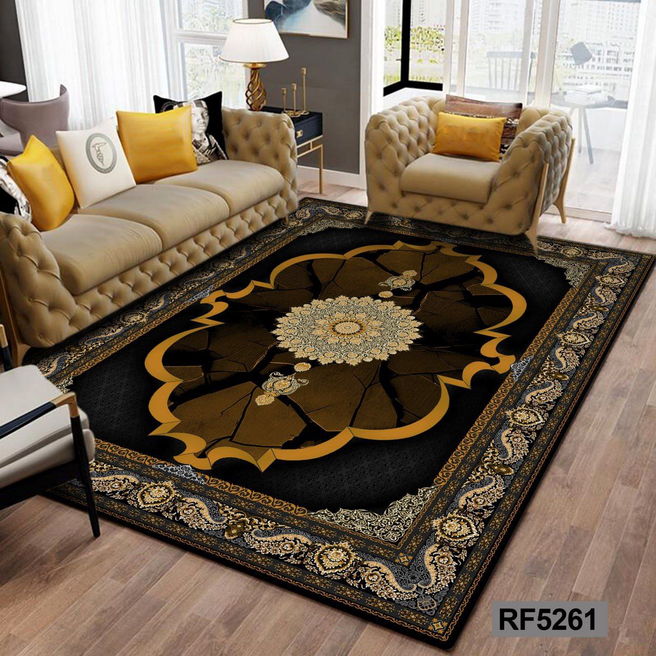 کاور مخمل کشدار فرش | طرح سنتی مشکی و طلایی کد RF4385