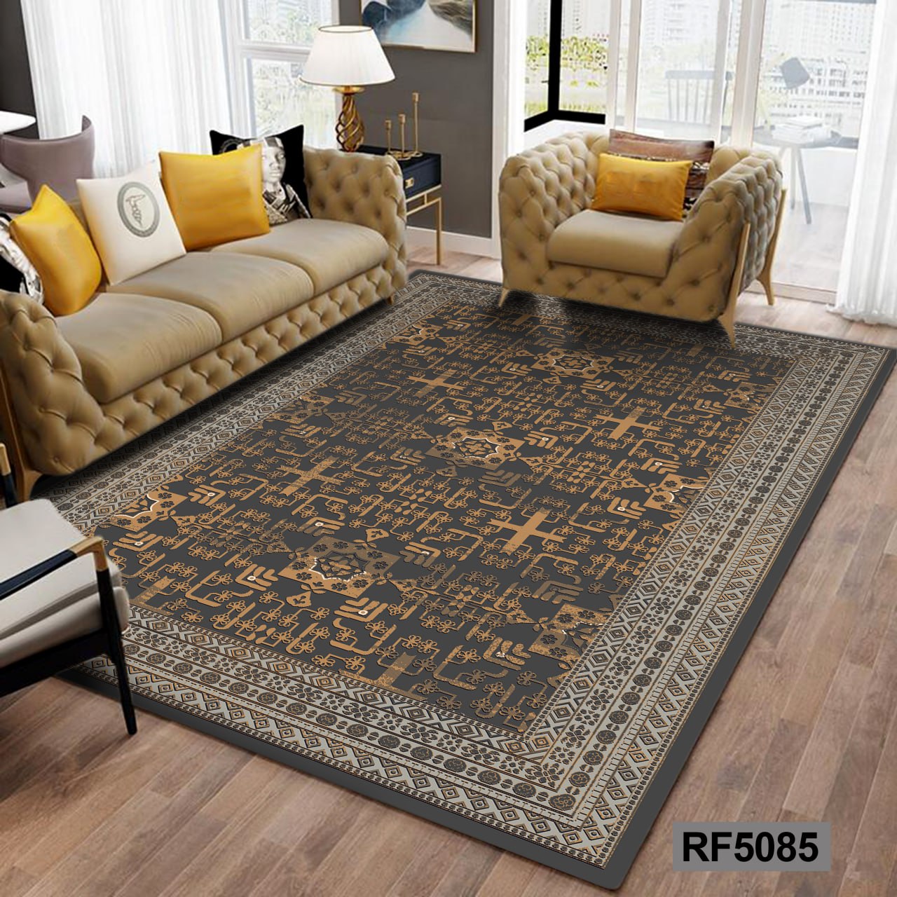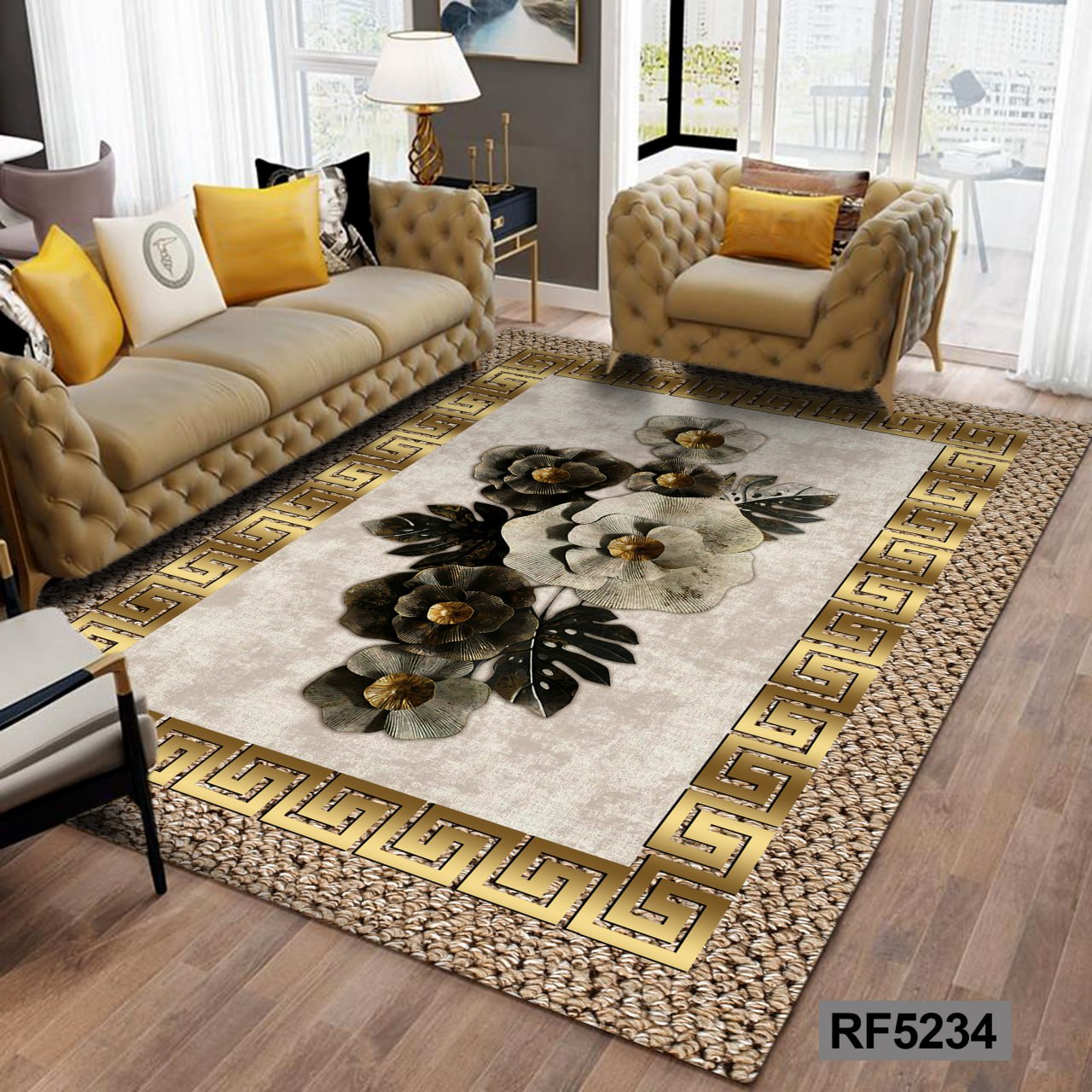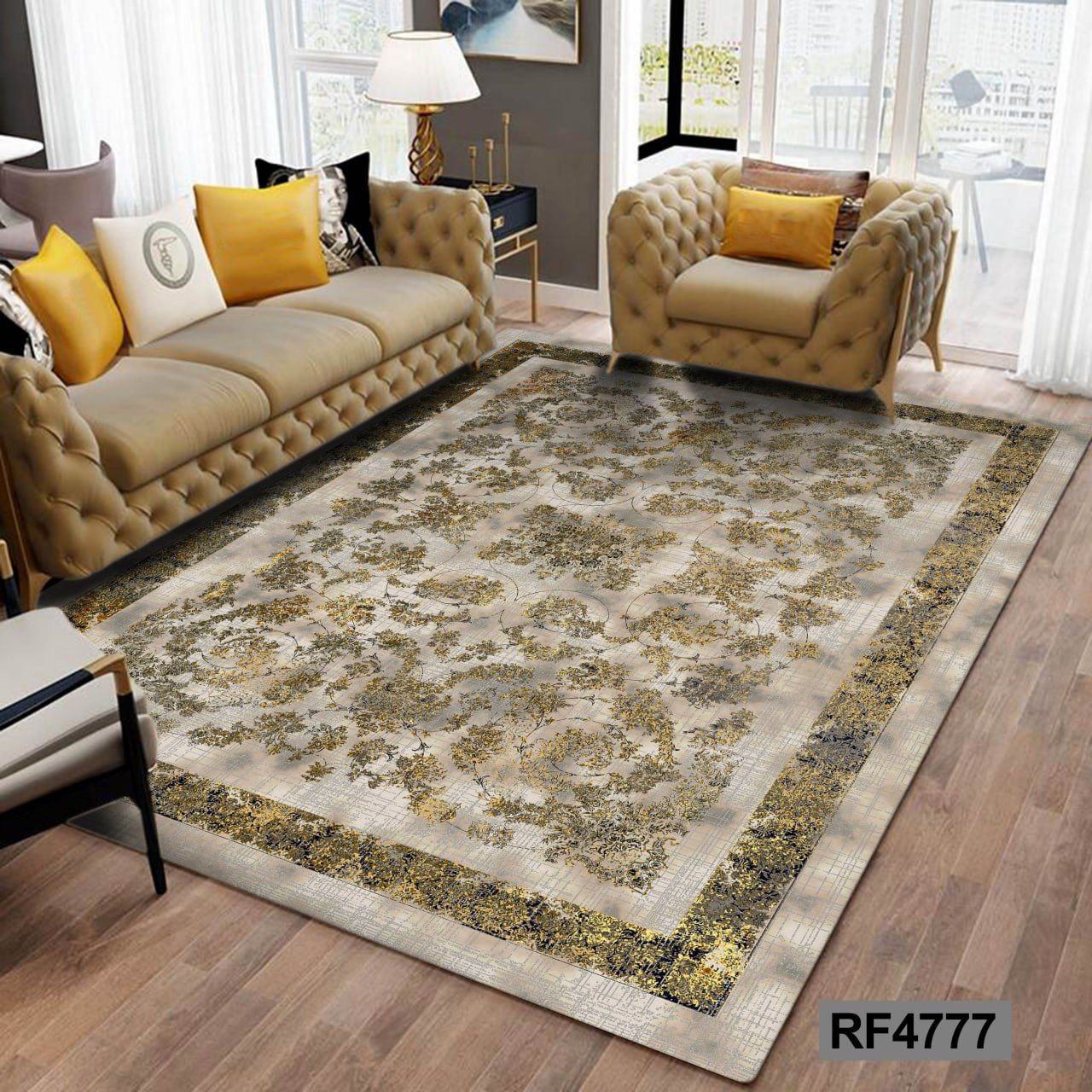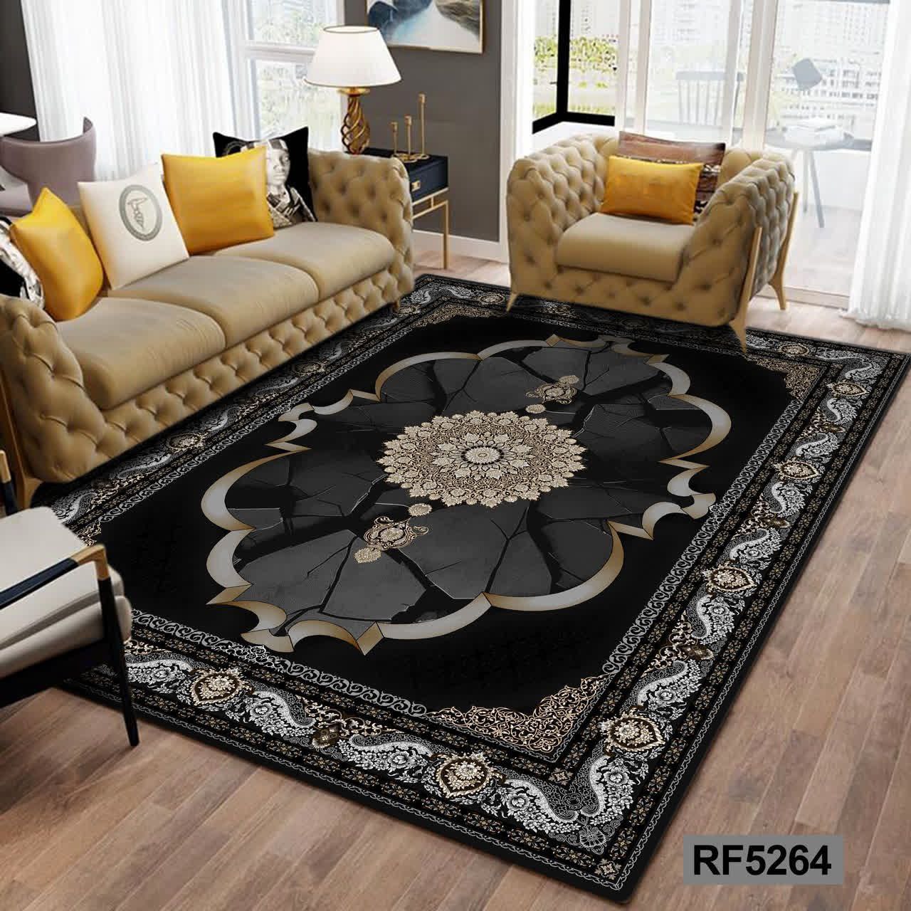 فرشینه مخمل ابریشم | طرح مدرن مشکی و طلایی کد RF5273