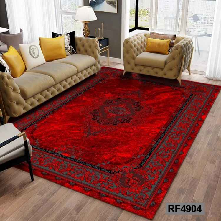 کاور مخمل کشدار فرش | طرح سنتی قرمز