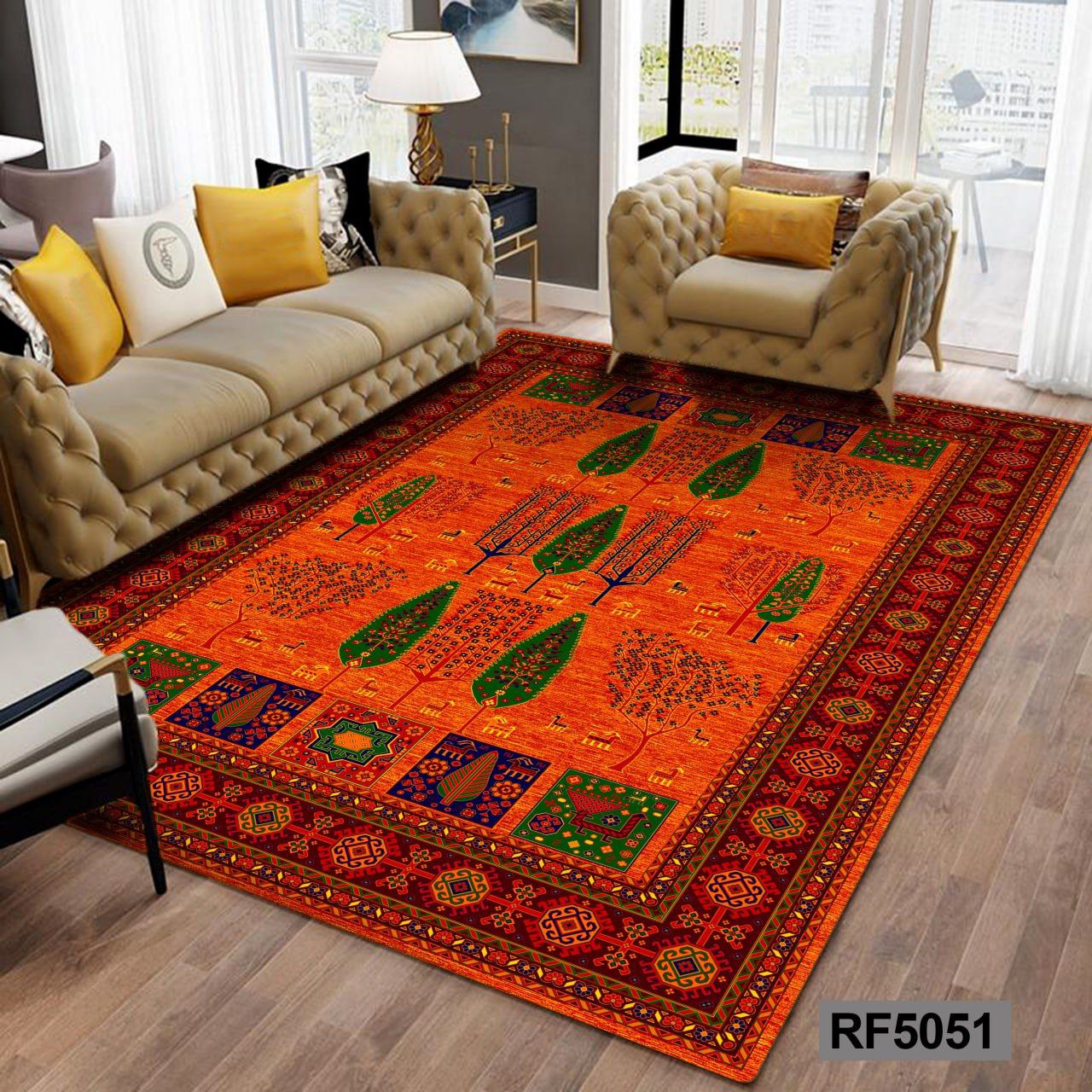 کاور مخمل کشدار فرش | طرح سنتی نارنجی کد RF5051