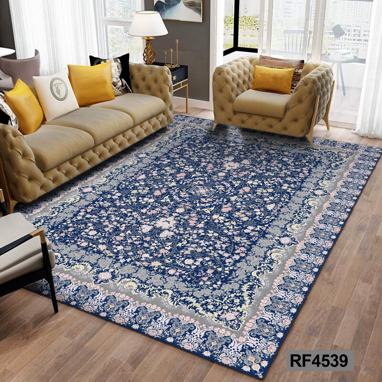 کاور مخمل کشدار فرش | طرح سنتی آبی کد RF4539