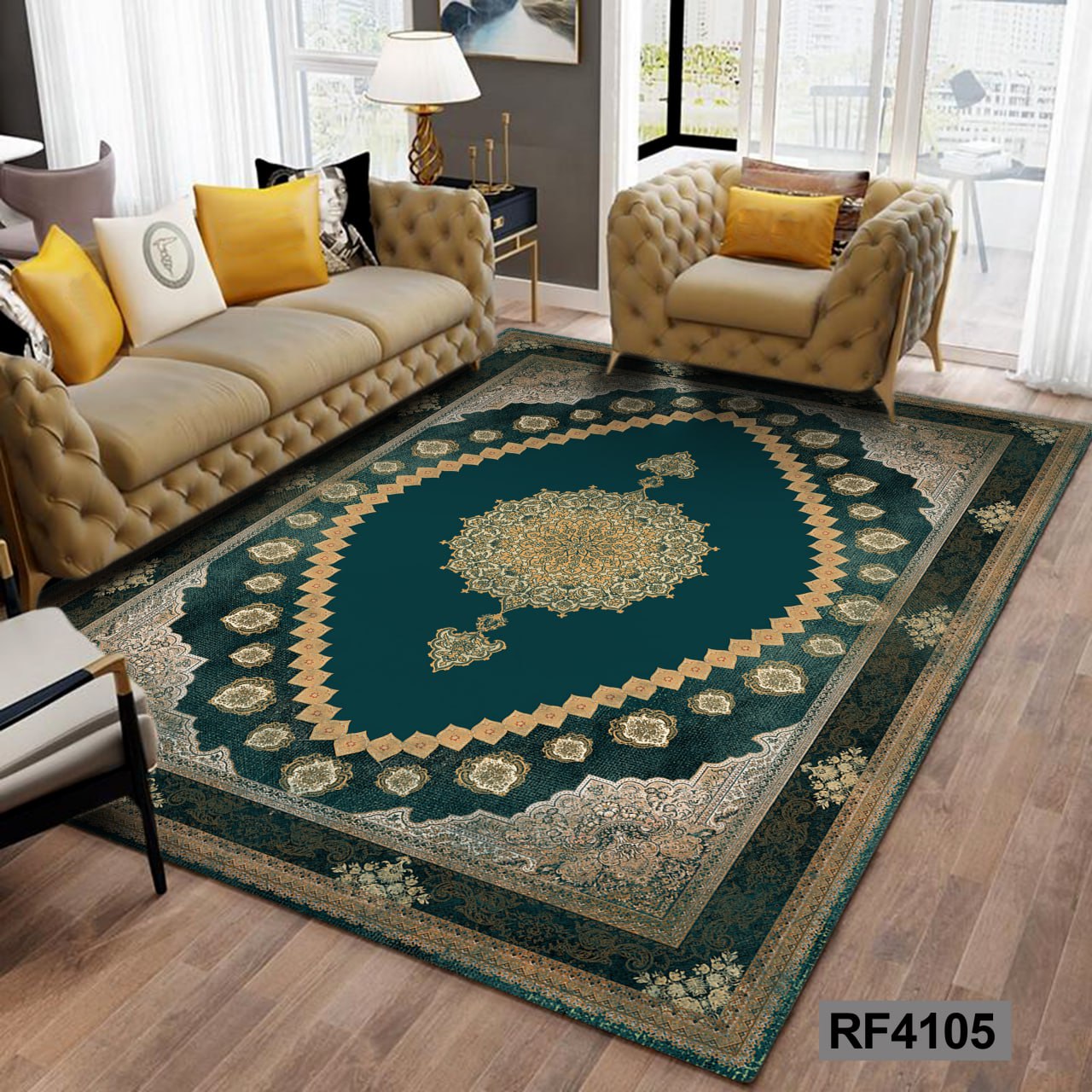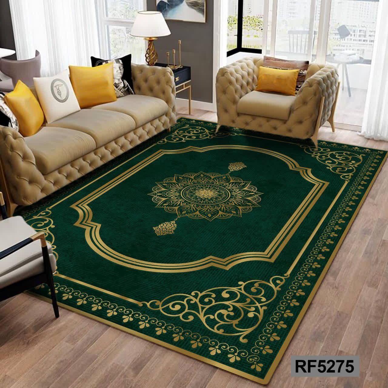 فرشینه مخمل ابریشم | طرح مدرن سبز و طلایی کد RF5269