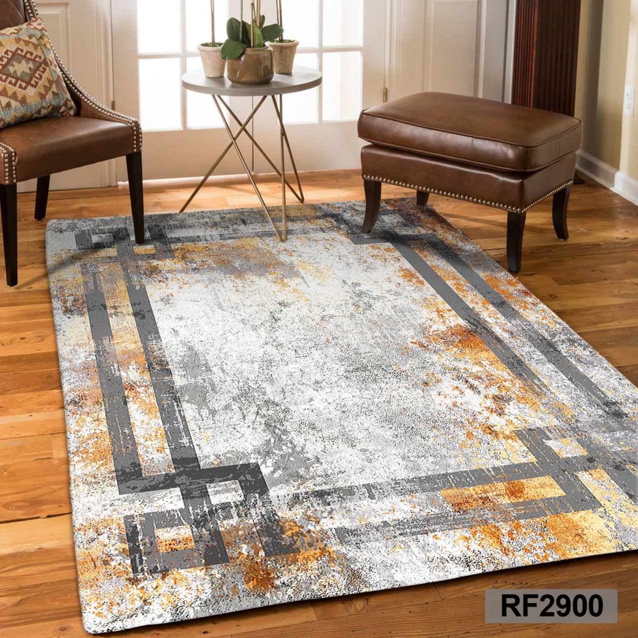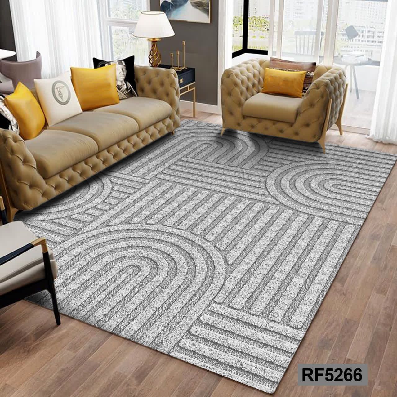 کاور مخمل کشدار فرش | طرح مدرن سفید و طوسی کد RF2900