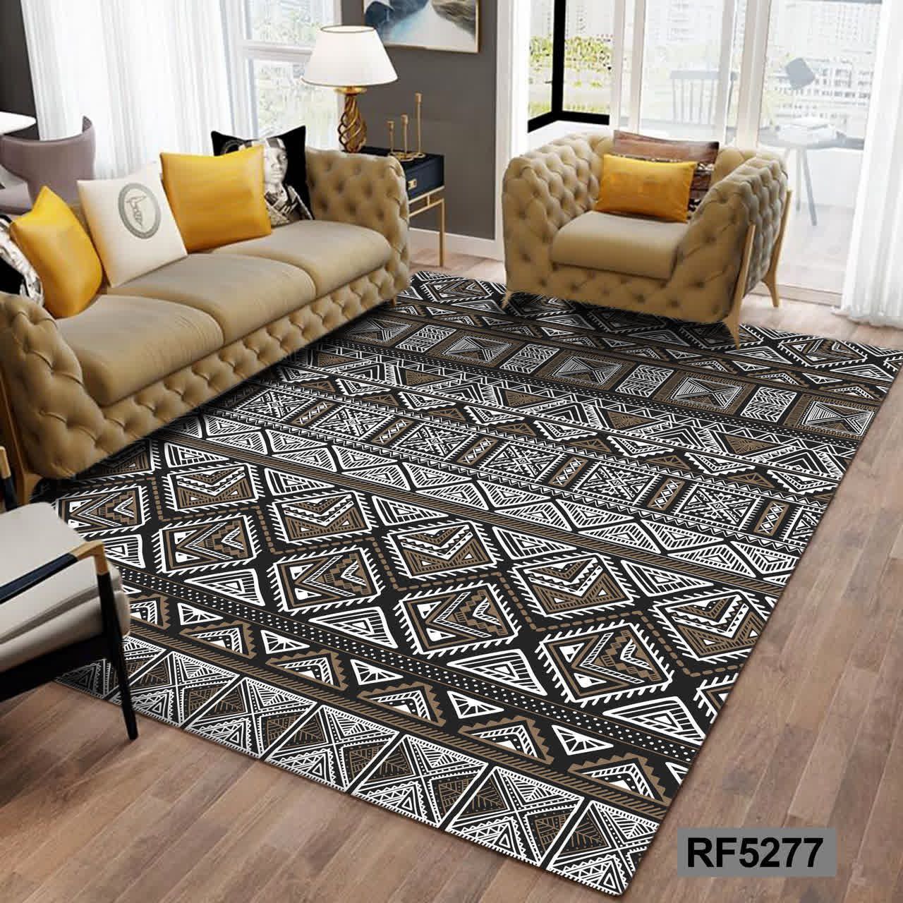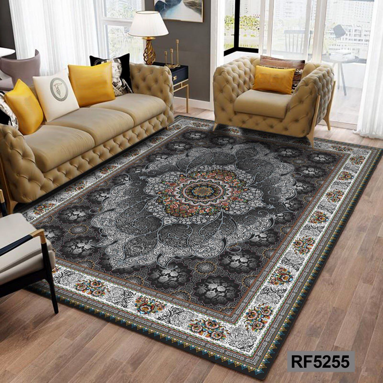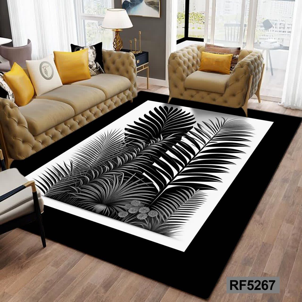 فرشینه مخمل ابریشم | طرح مدرن مشکی و سفید کد RF5267