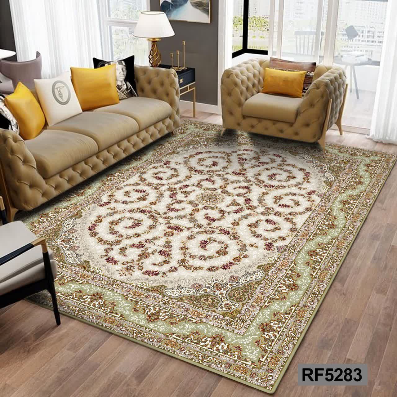کاور مخمل کشدار فرش | طرح سنتی زرد و سبز کد RF4997