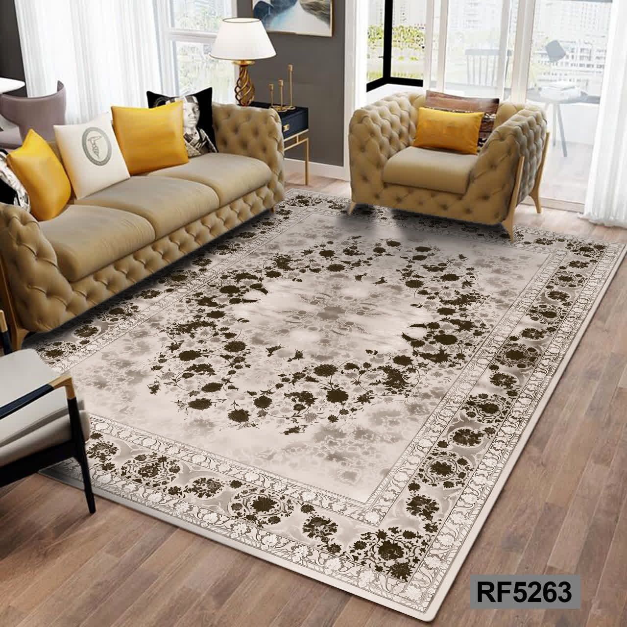 کاور مخمل کشدار فرش | طرح سنتی سفید و قهوه ای کد RF874