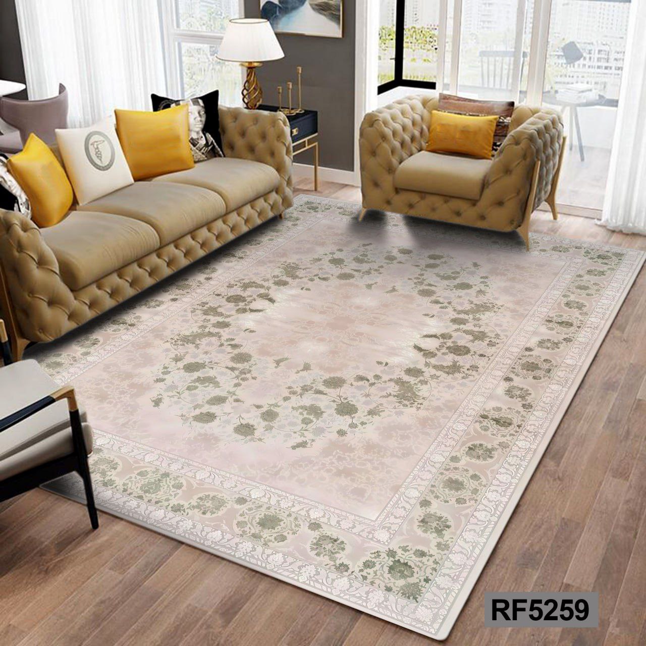 کاور مخمل کشدار فرش | طرح سنتی سبز و سفید کد RF4105