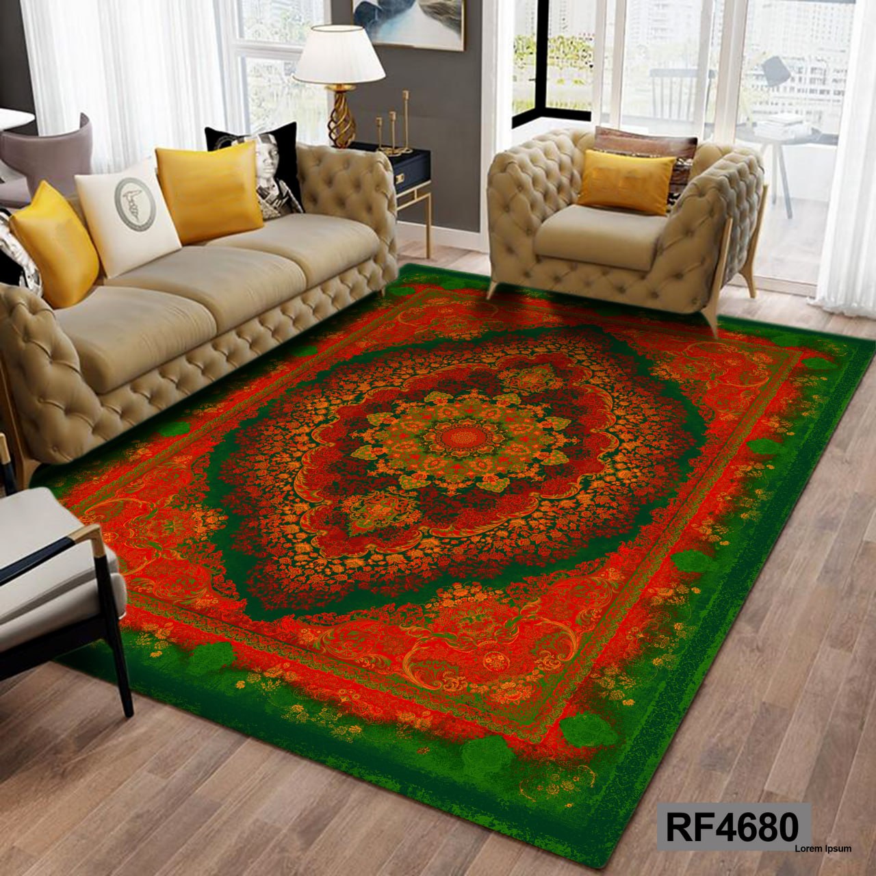 کاور مخمل کشدار فرش | طرح سنتی سبز و قرمز۲٬۴۹۰٬۰۰۰ تومان