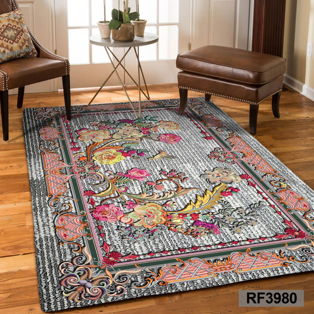 کاور مخمل کشدار فرش | طرح سنتی سفید و طوسی۲٬۴۹۰٬۰۰۰ تومان