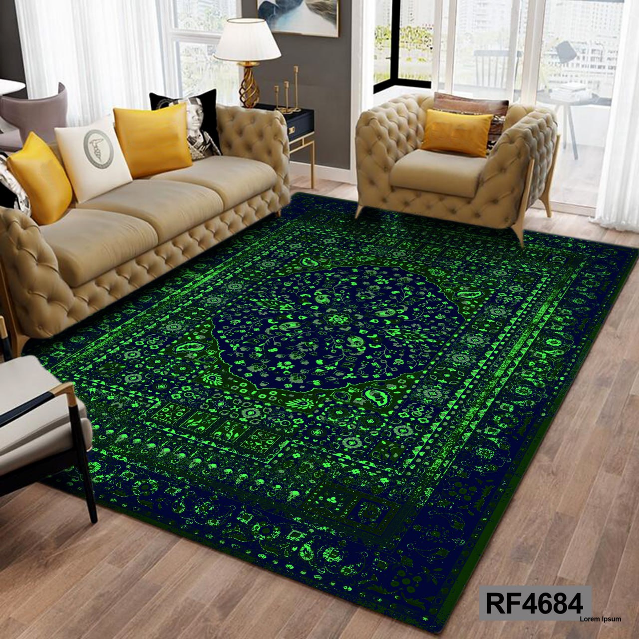کاور مخمل کشدار فرش | طرح سنتی سبز و مشکی۲٬۴۹۰٬۰۰۰ تومان