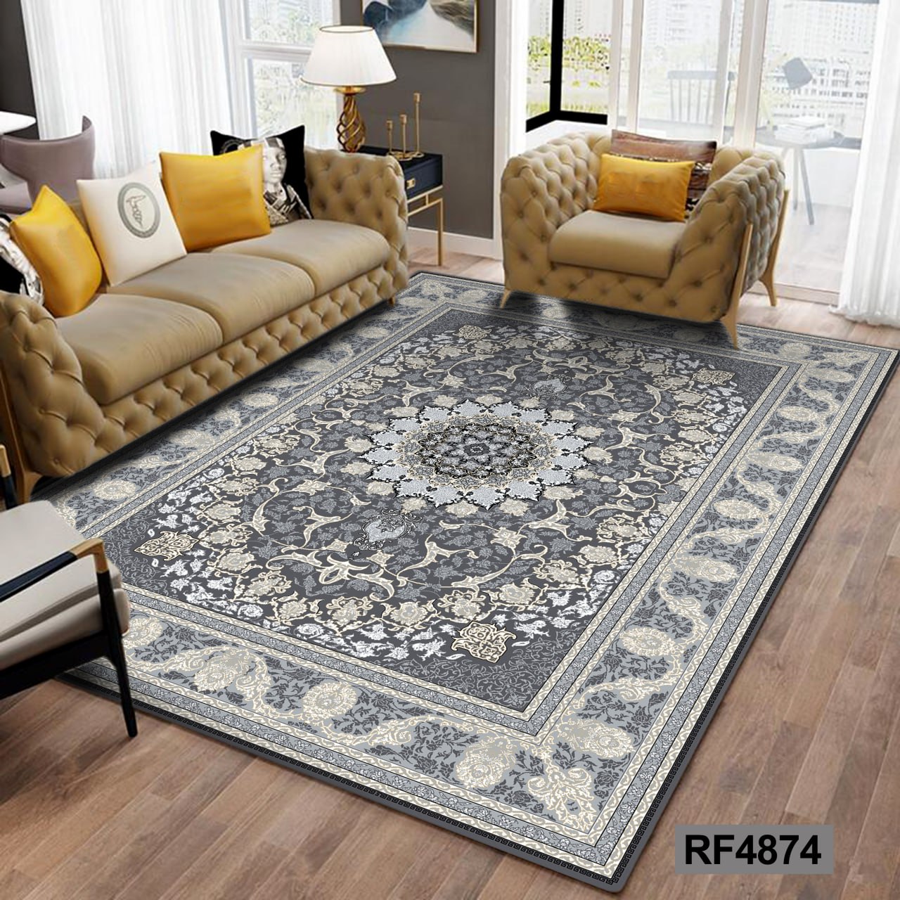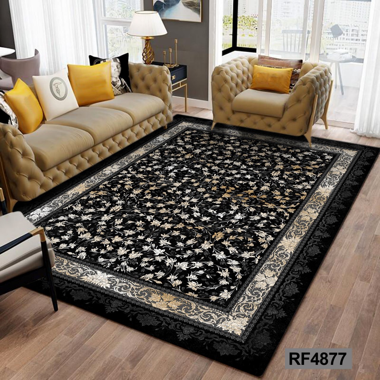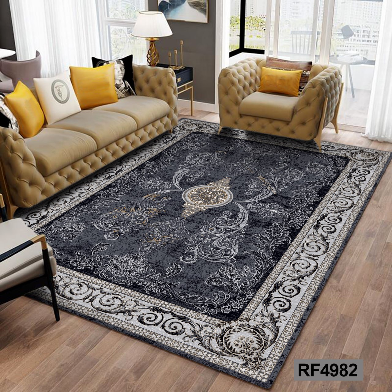 کاور مخمل کشدار فرش | طرح سنتی مشکی و طوسی۲٬۴۹۰٬۰۰۰ تومان