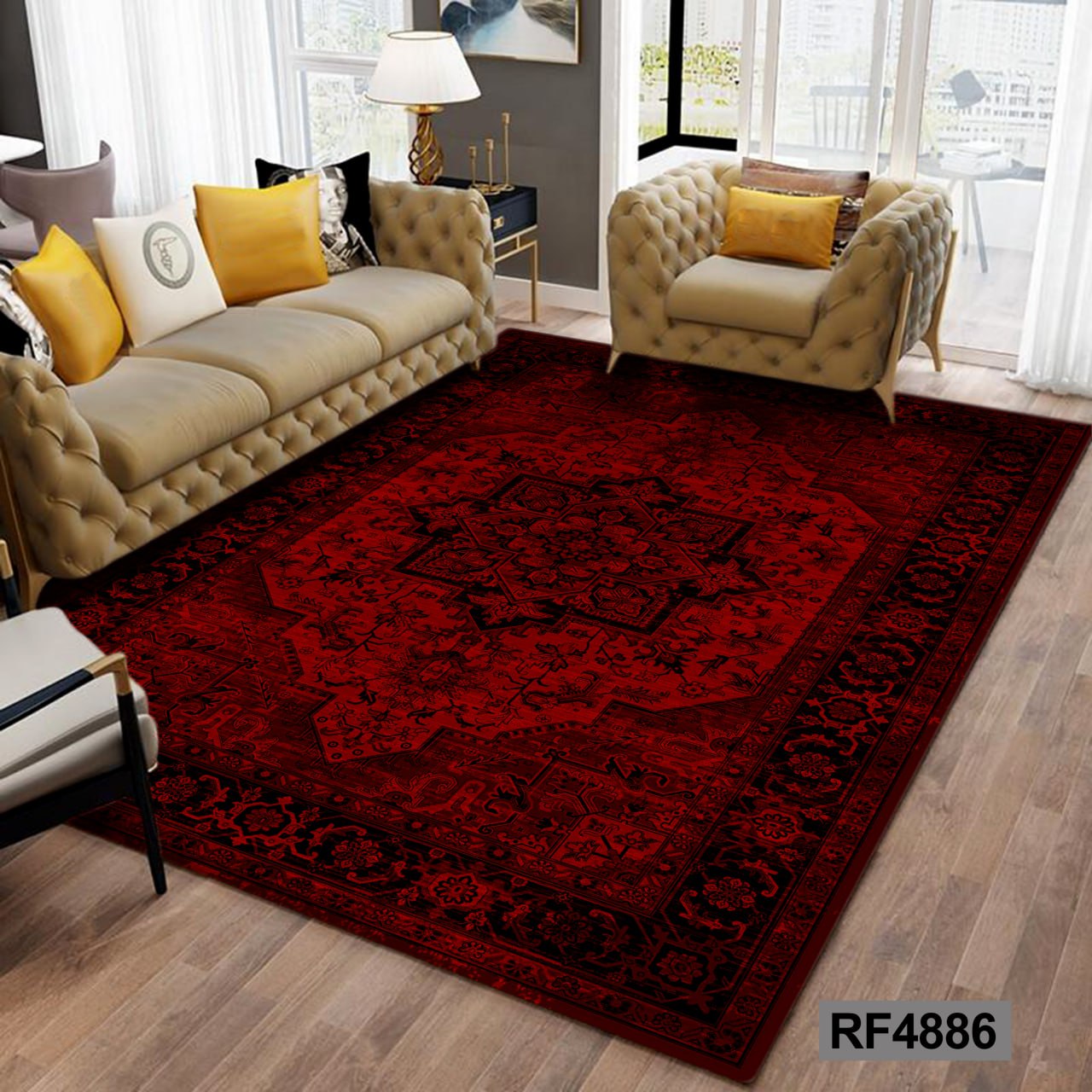 کاور مخمل کشدار فرش | طرح سنتی مشکی و قرمز۲٬۴۹۰٬۰۰۰ تومان