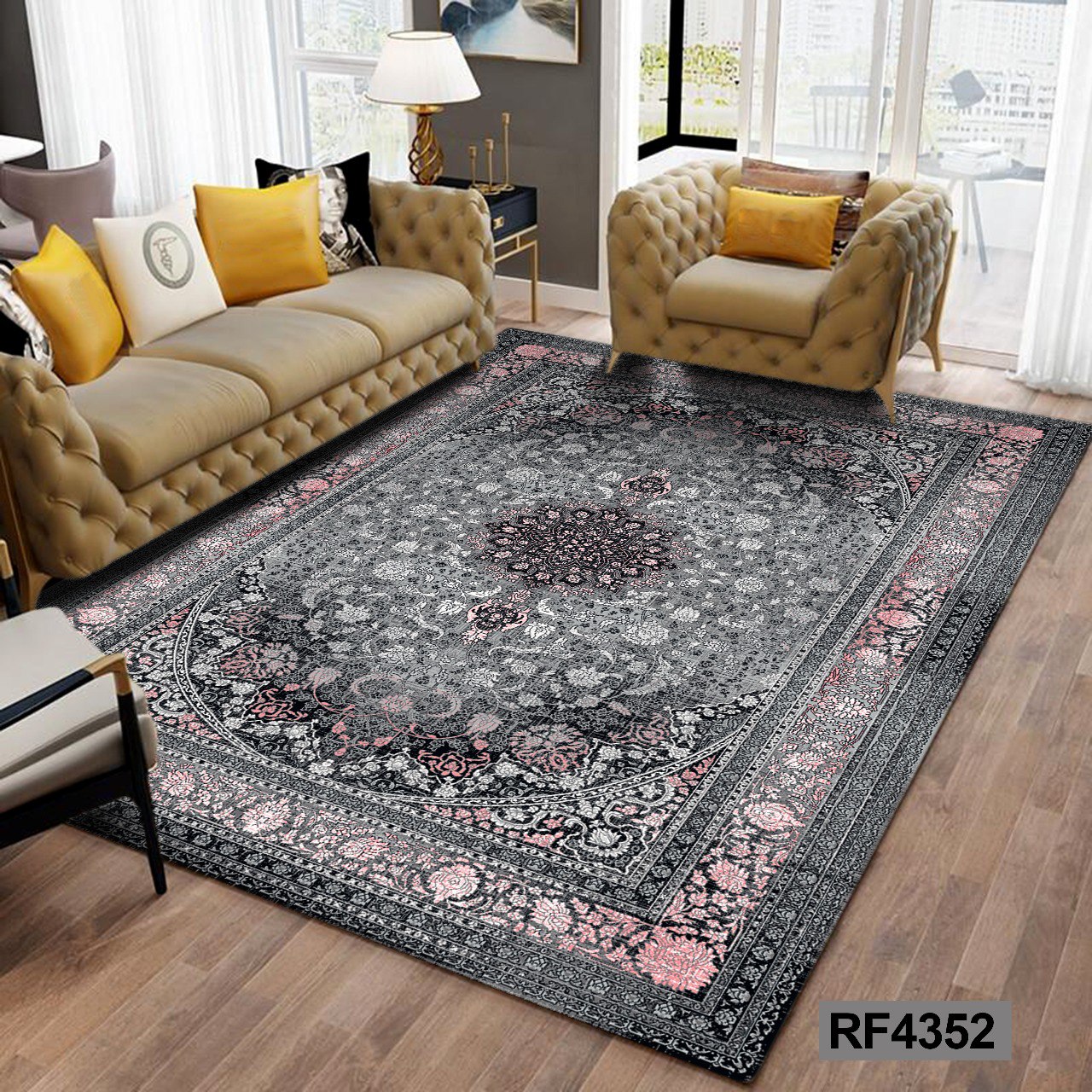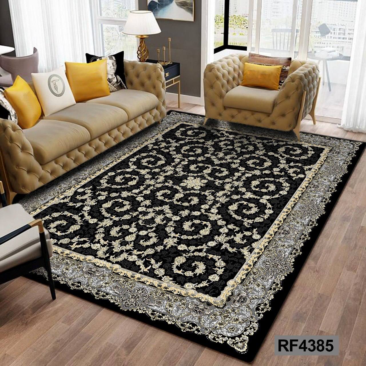 کاور مخمل کشدار فرش | طرح سنتی مشکی و طوسی۲٬۴۹۰٬۰۰۰ تومان