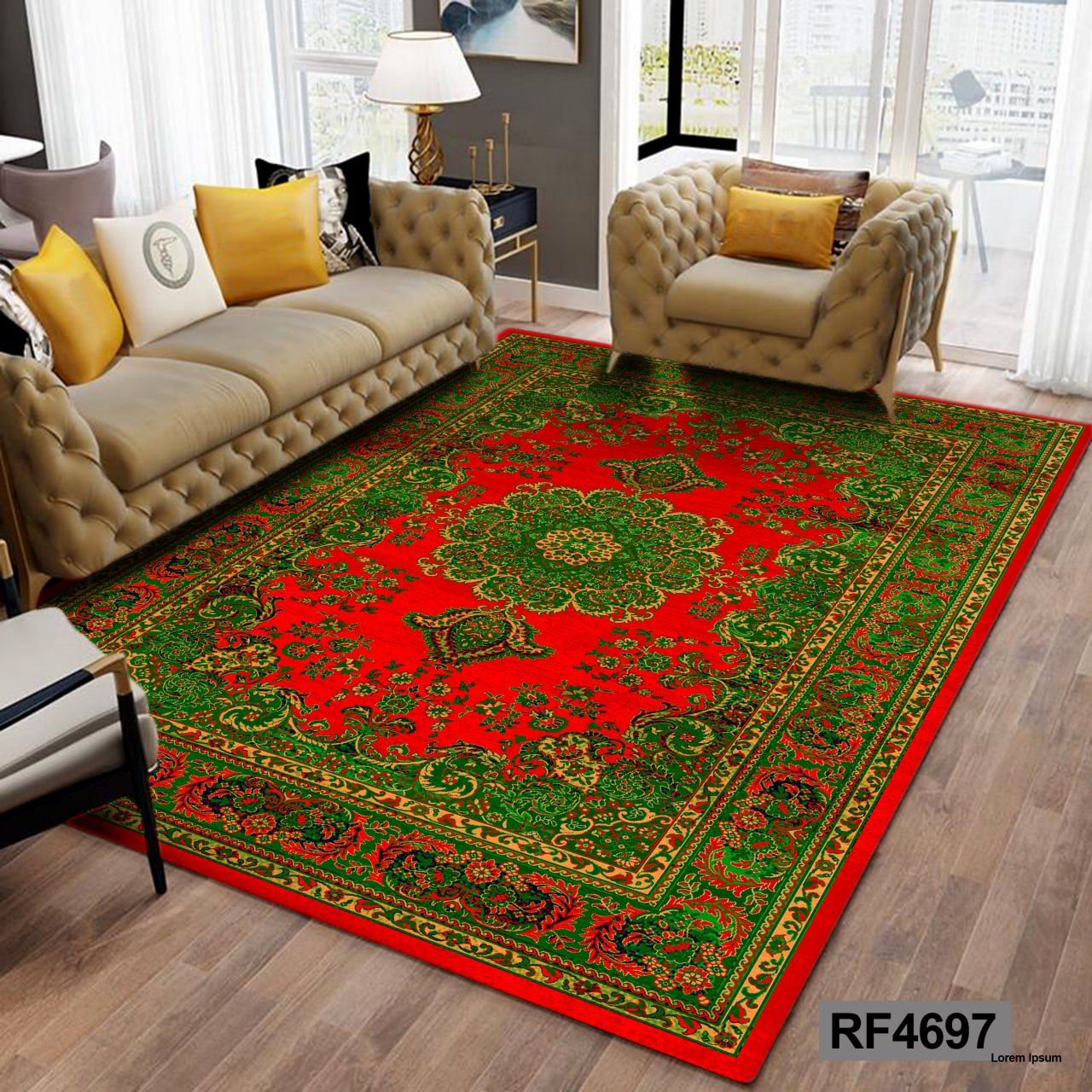 کاور مخمل کشدار فرش | طرح سنتی سبز و قرمز۲٬۴۹۰٬۰۰۰ تومان