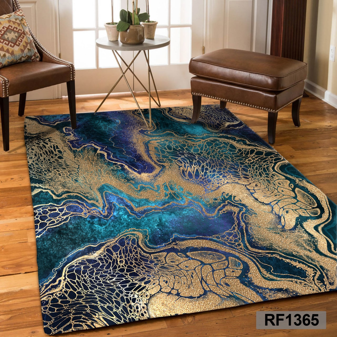 کاور مخمل کشدار فرش | طرح مدرن آبی، طلایی و سفید۲٬۱۹۰٬۰۰۰ تومان