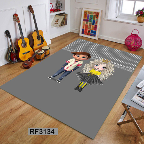 کاور مخمل کشدار فرش | طرح دختر و پسر بچه