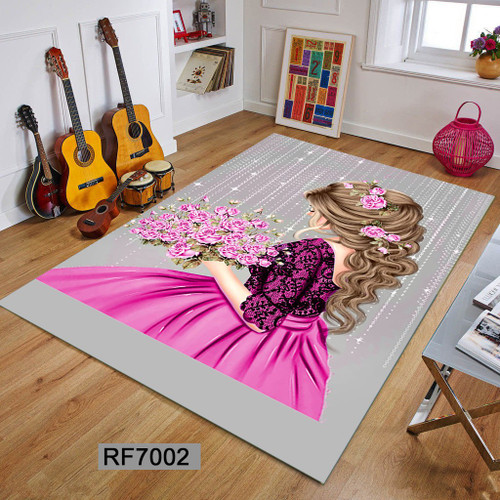 کاور مخمل کشدار فرش | طرح دختر مو آبی