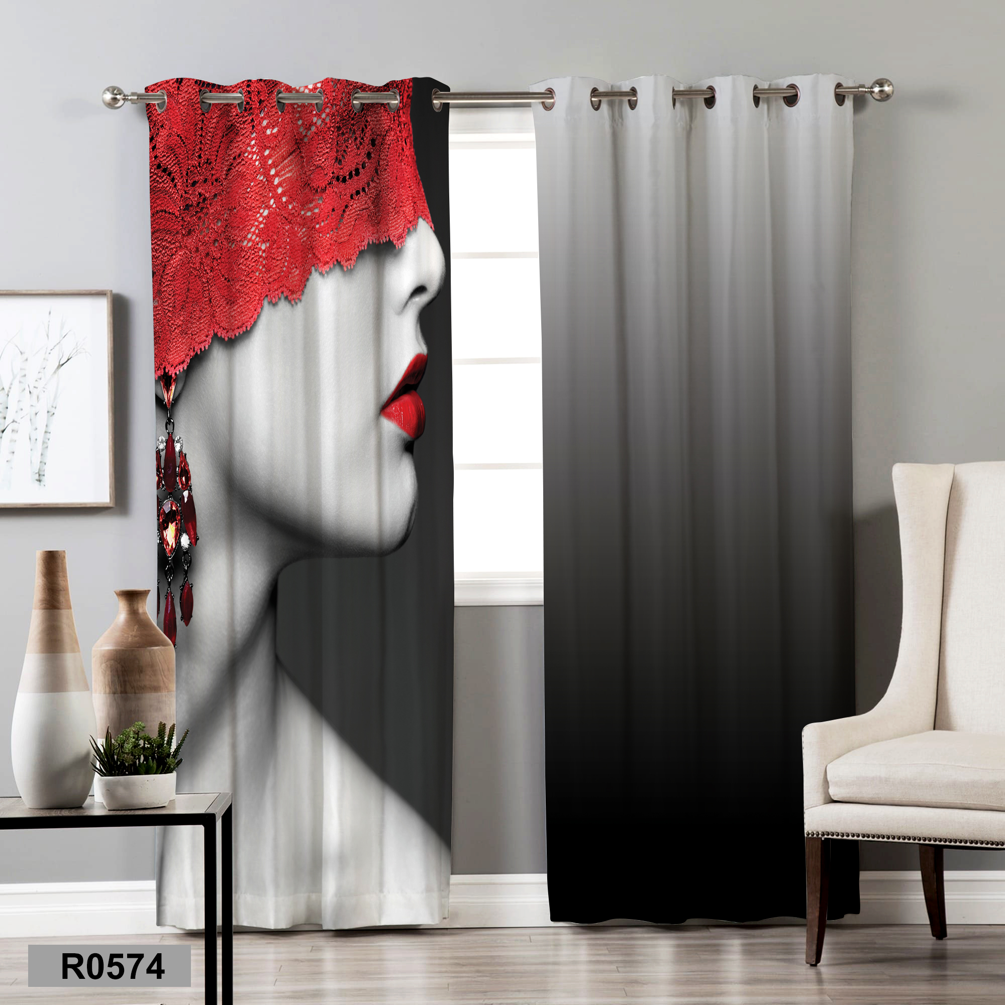 پرده فانتزی طرح مشکی ,سفید و قرمز۱٬۱۵۰٬۰۰۰ تومان