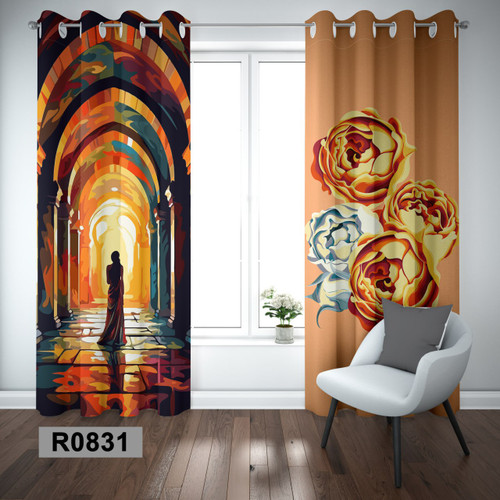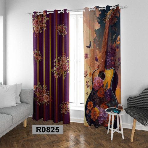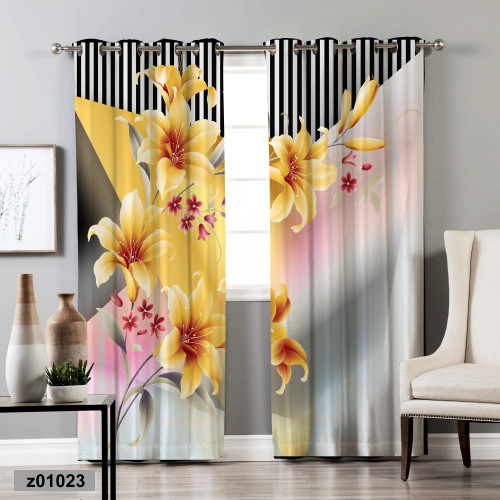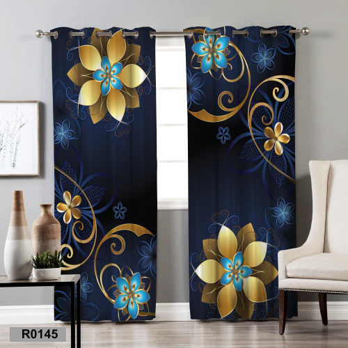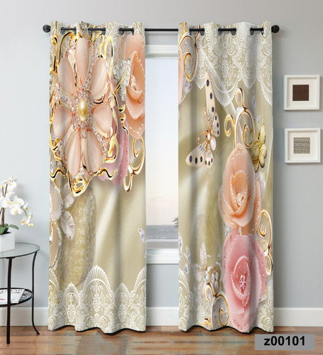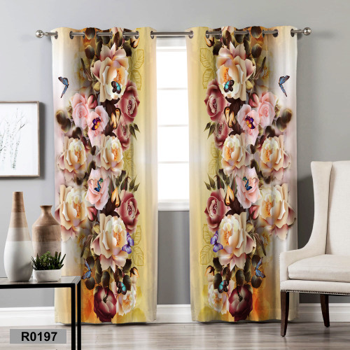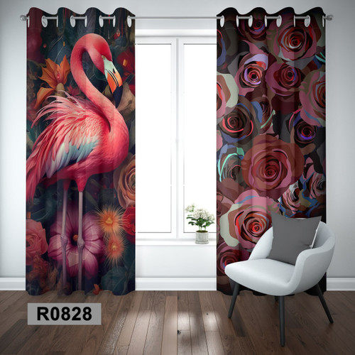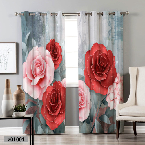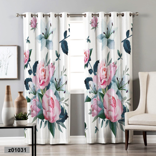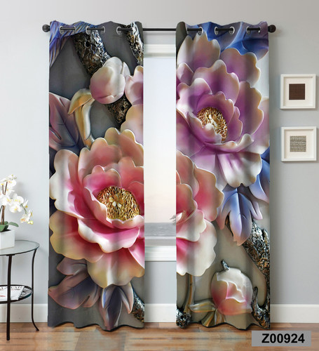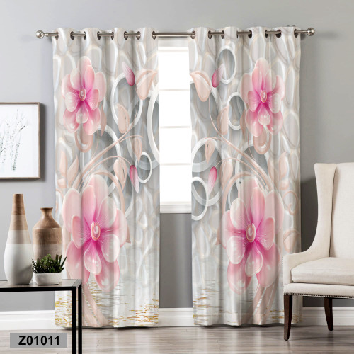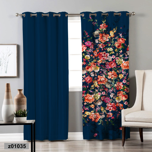 پرده هازان | طرح گلدار صورتی و سرمه ای