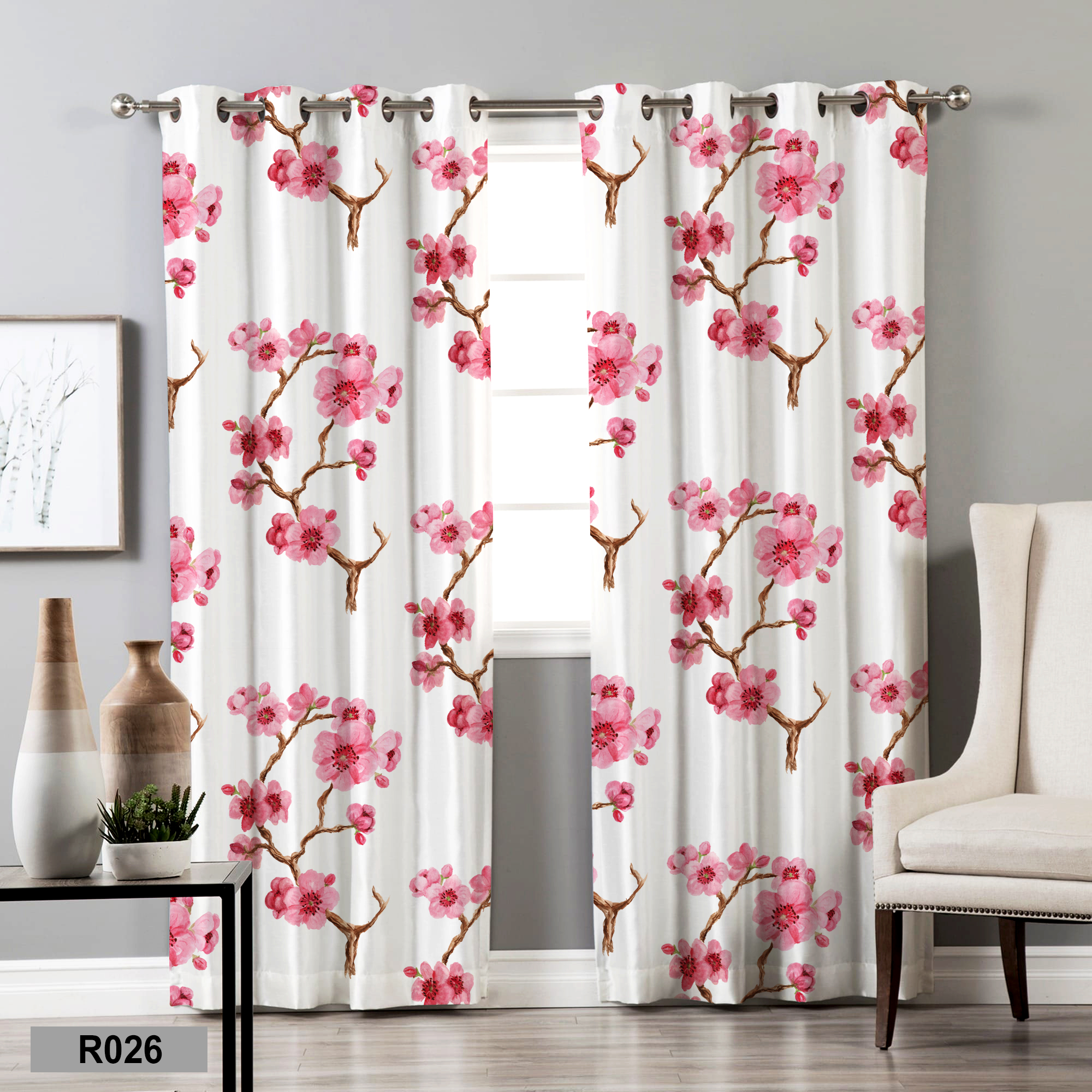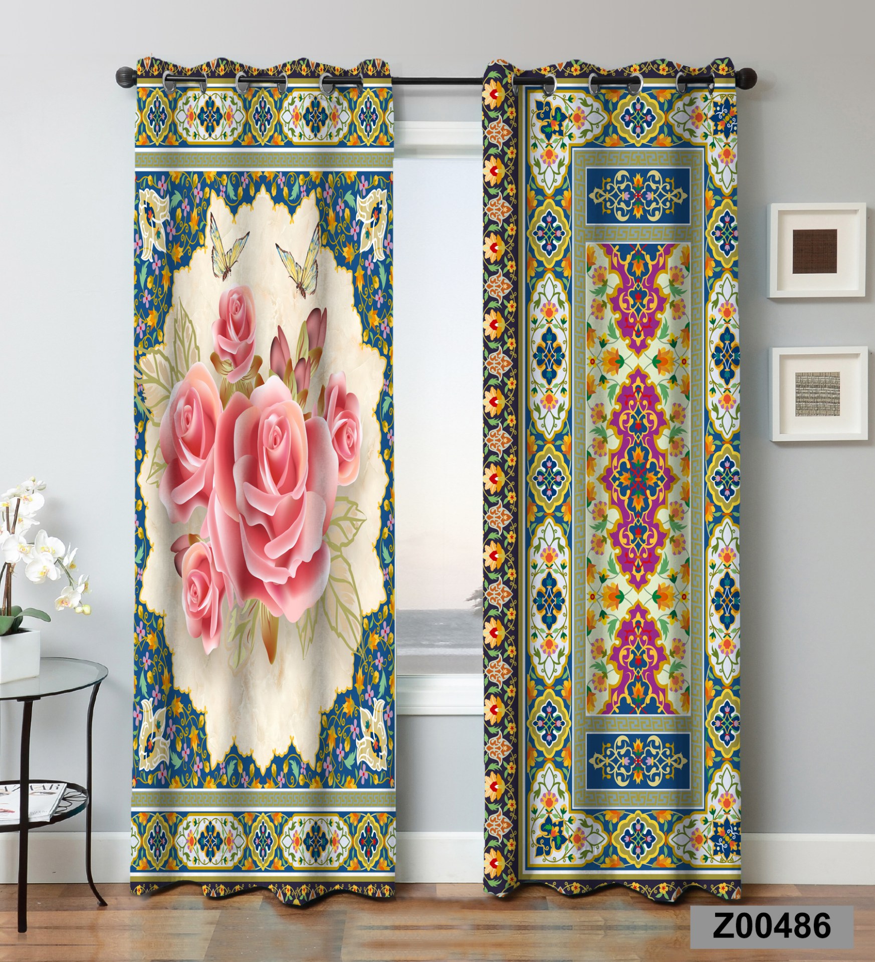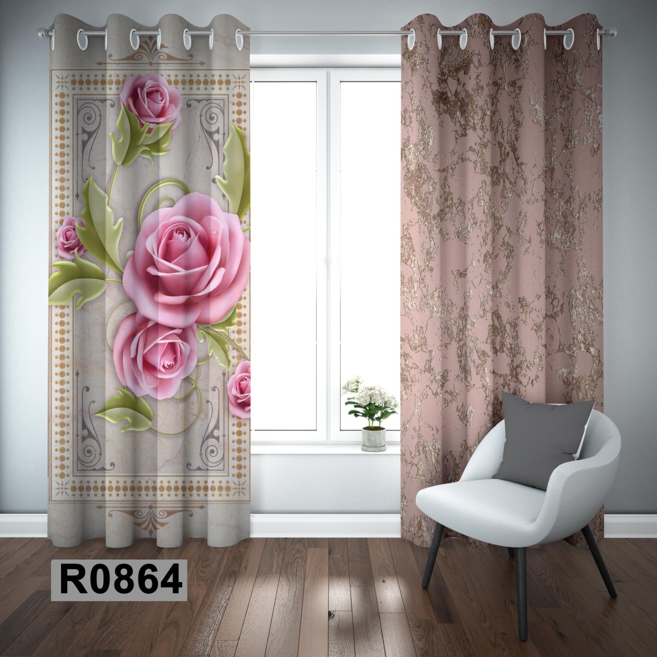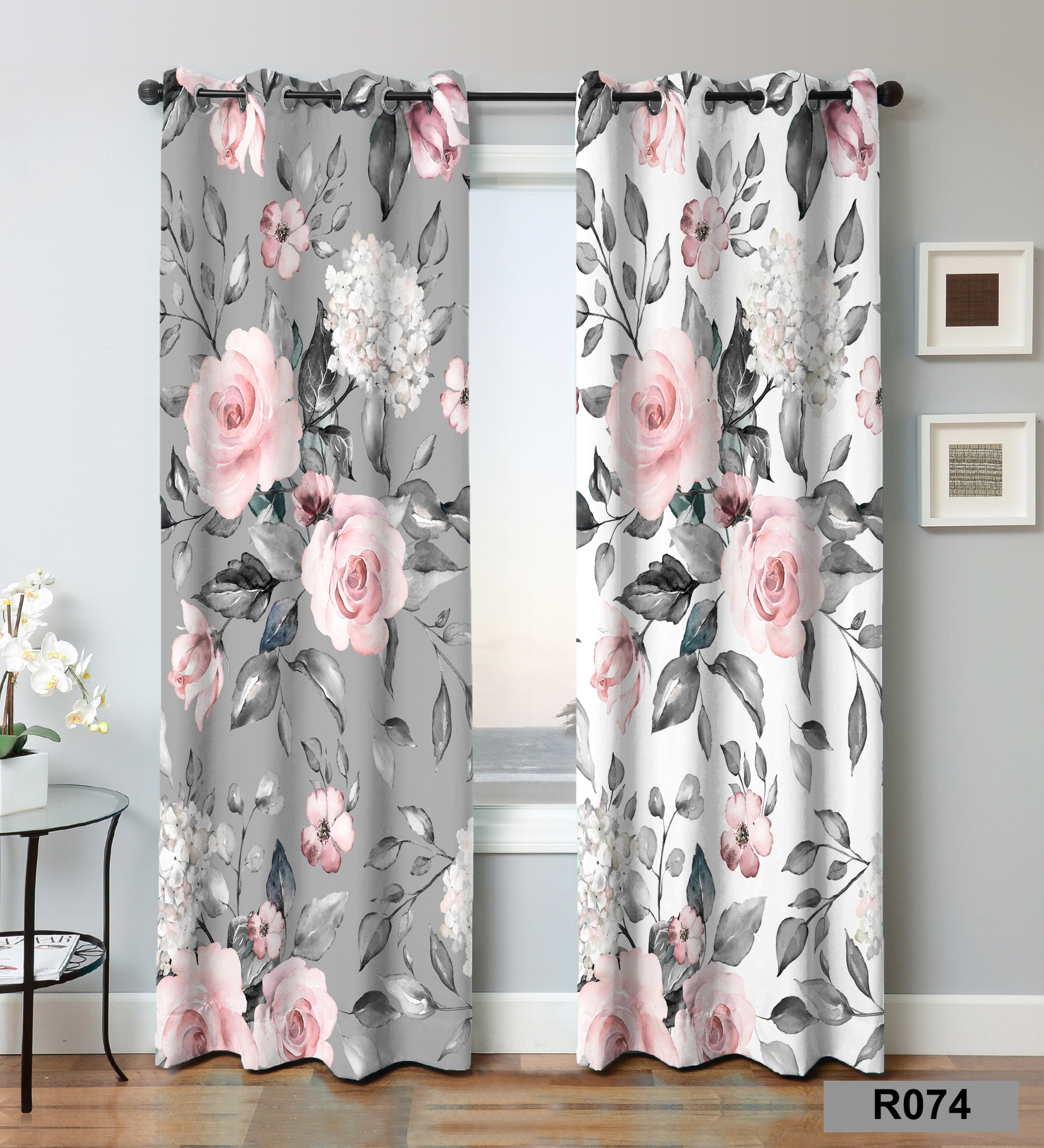پرده هازان | طرح گلدار صورتی و سرمه ای