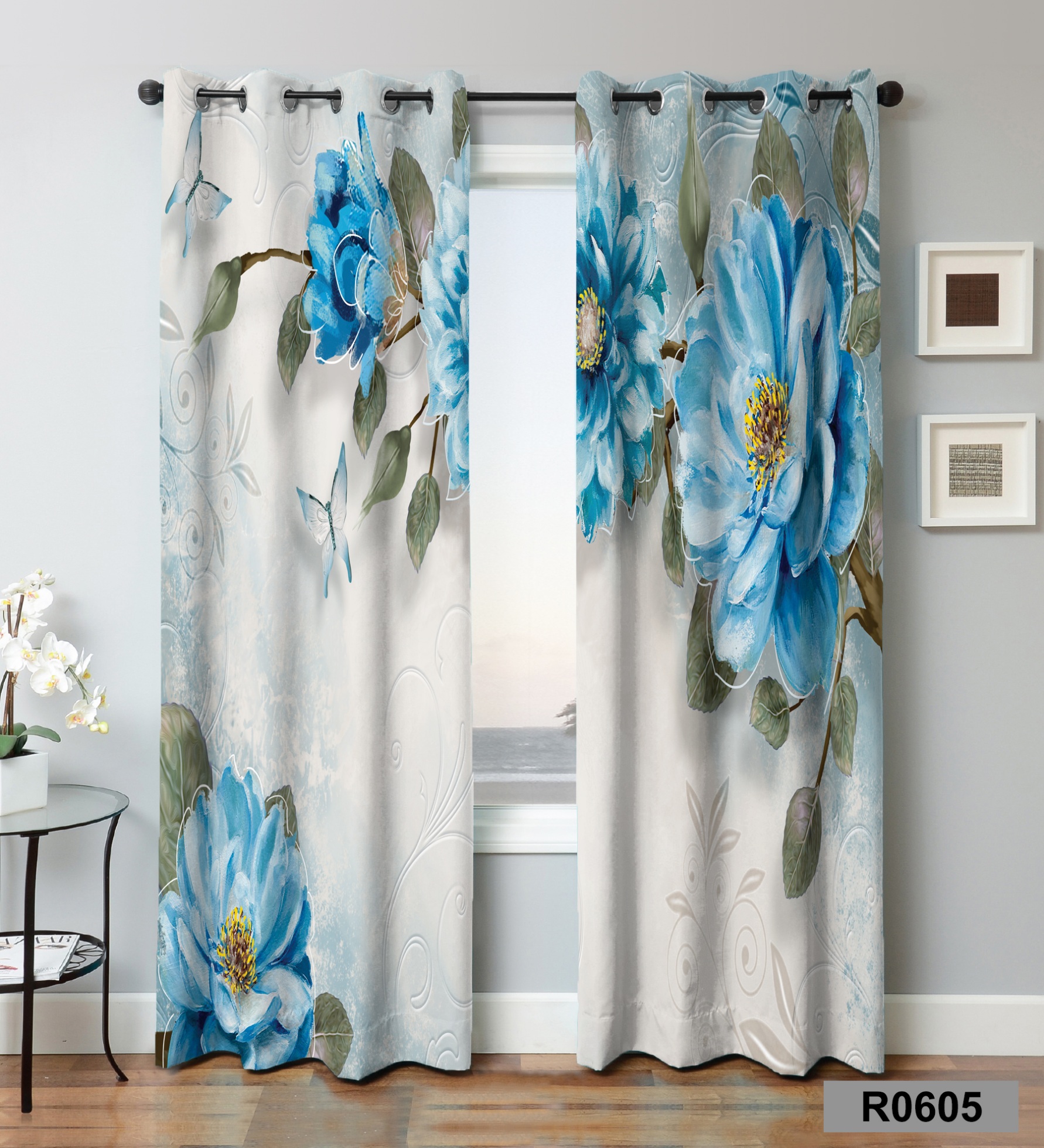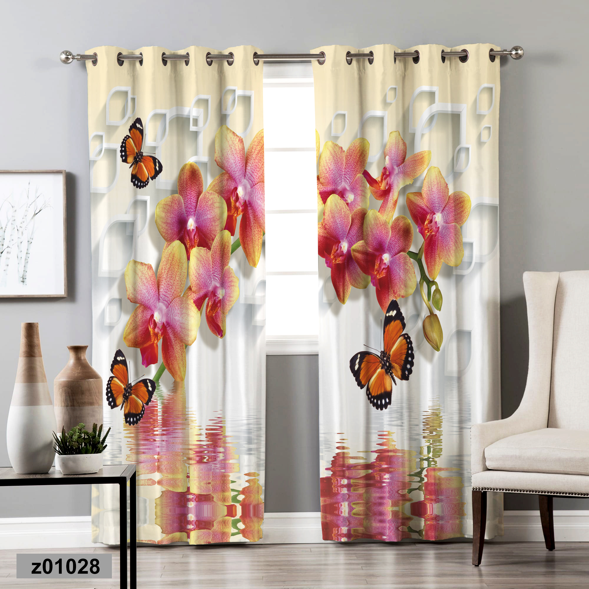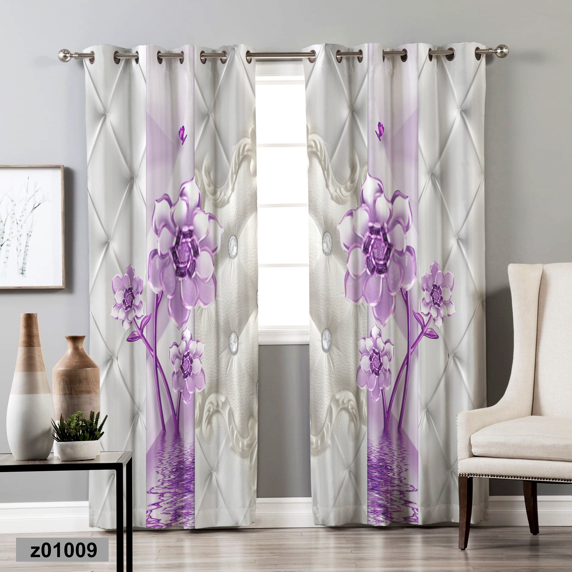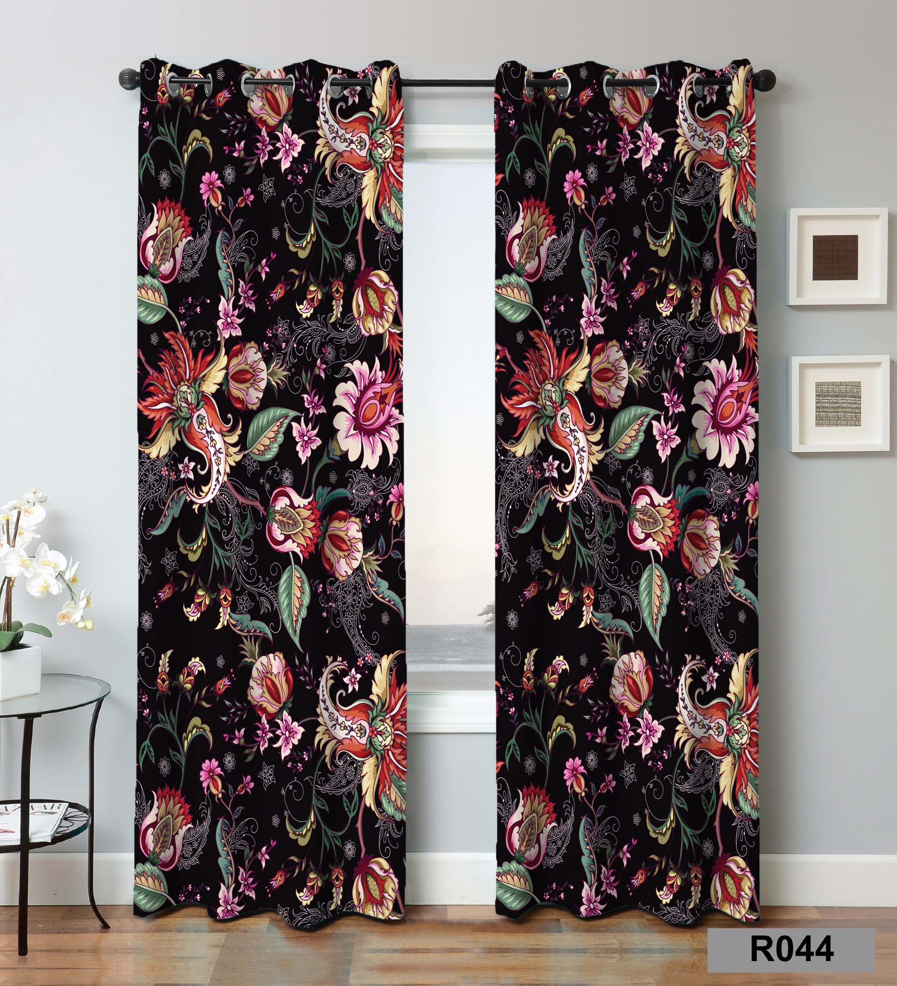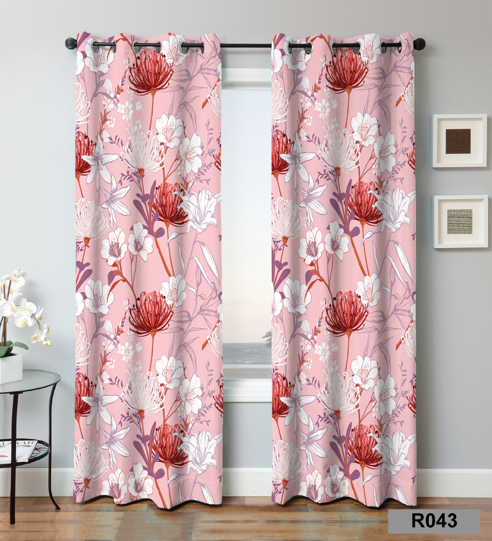 پرده هازان | طرح گلدار صورتی و سرمه ای