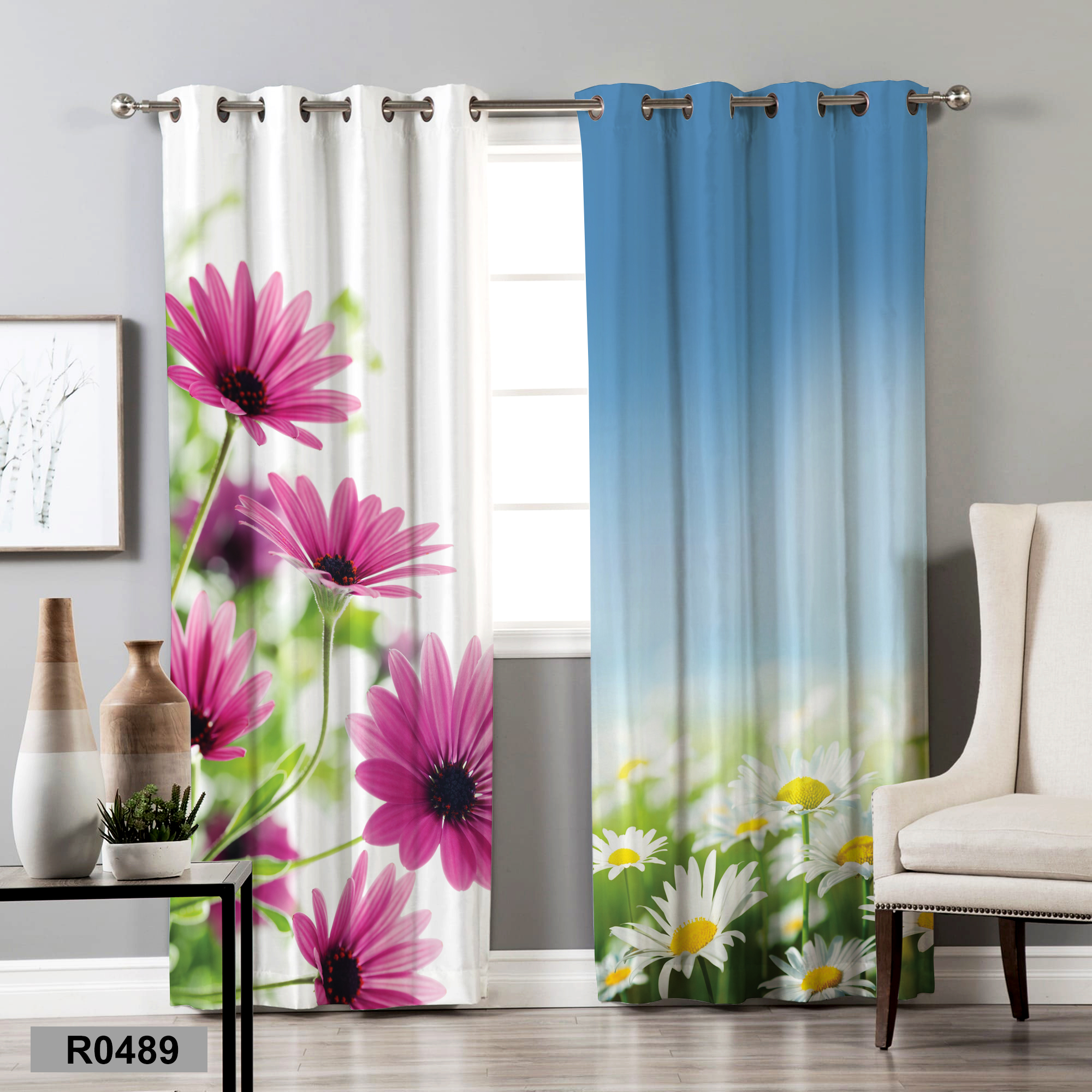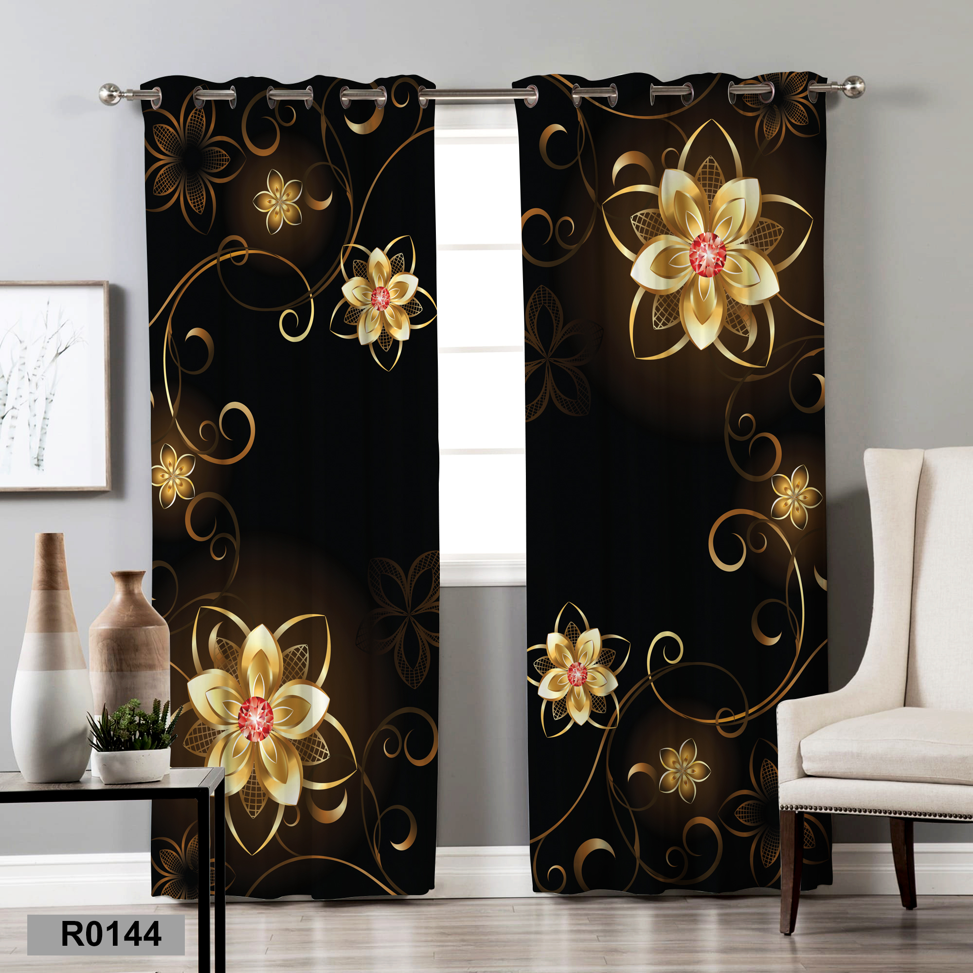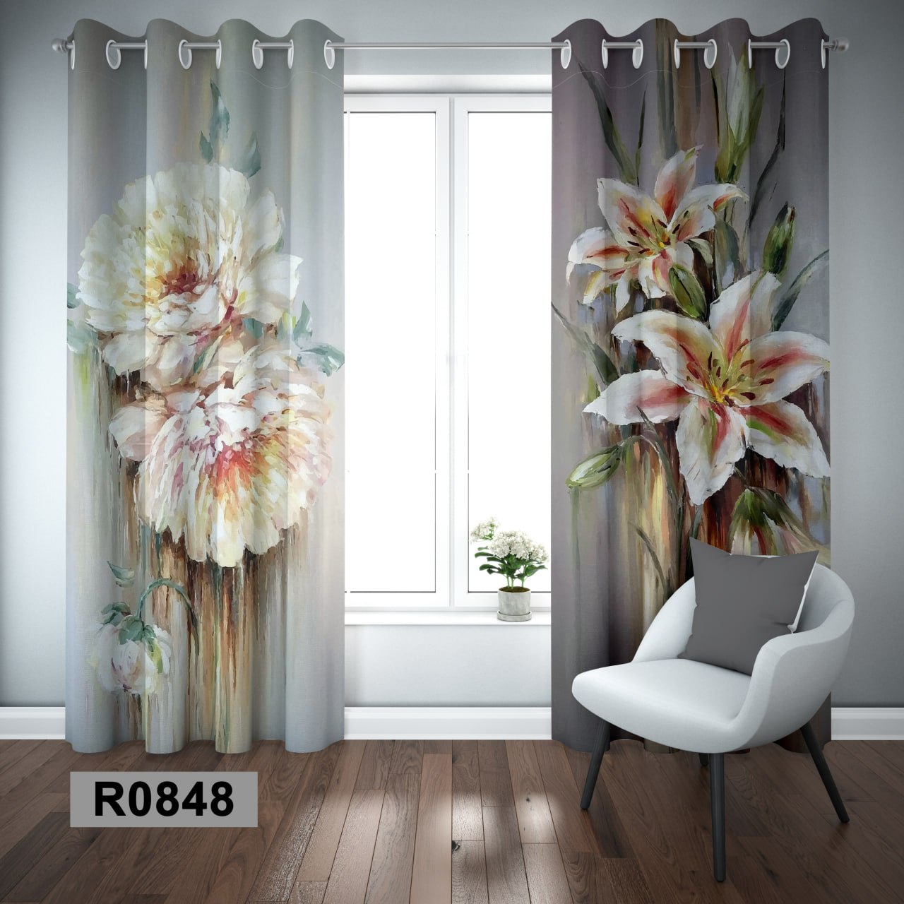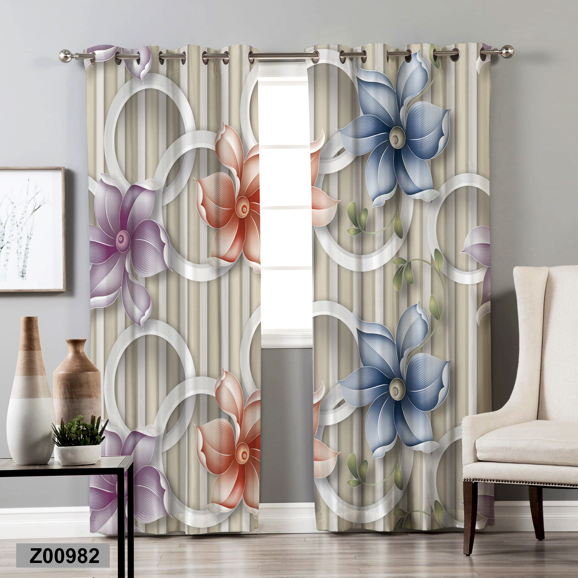 پرده هازان | طرح گلدار صورتی و سرمه ای