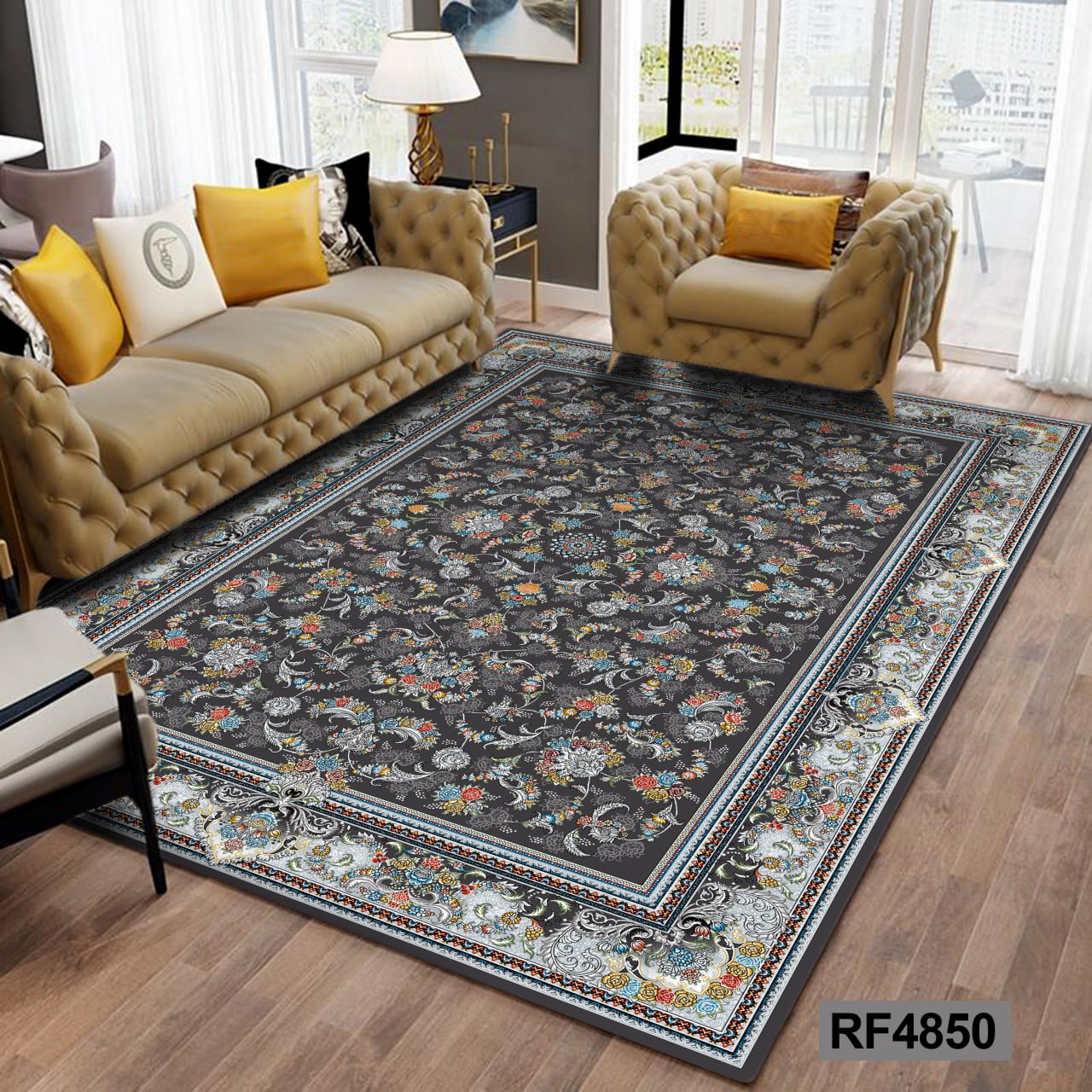 کاور مخمل کشدار فرش | طرح سنتی مشکی و طوسی۱٬۹۹۰٬۰۰۰ تومان