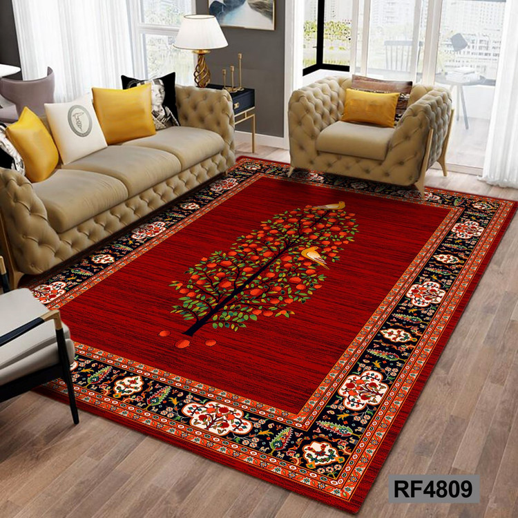 روفرشی مخمل کشدار | طرح سنتی قرمز و نارنجی