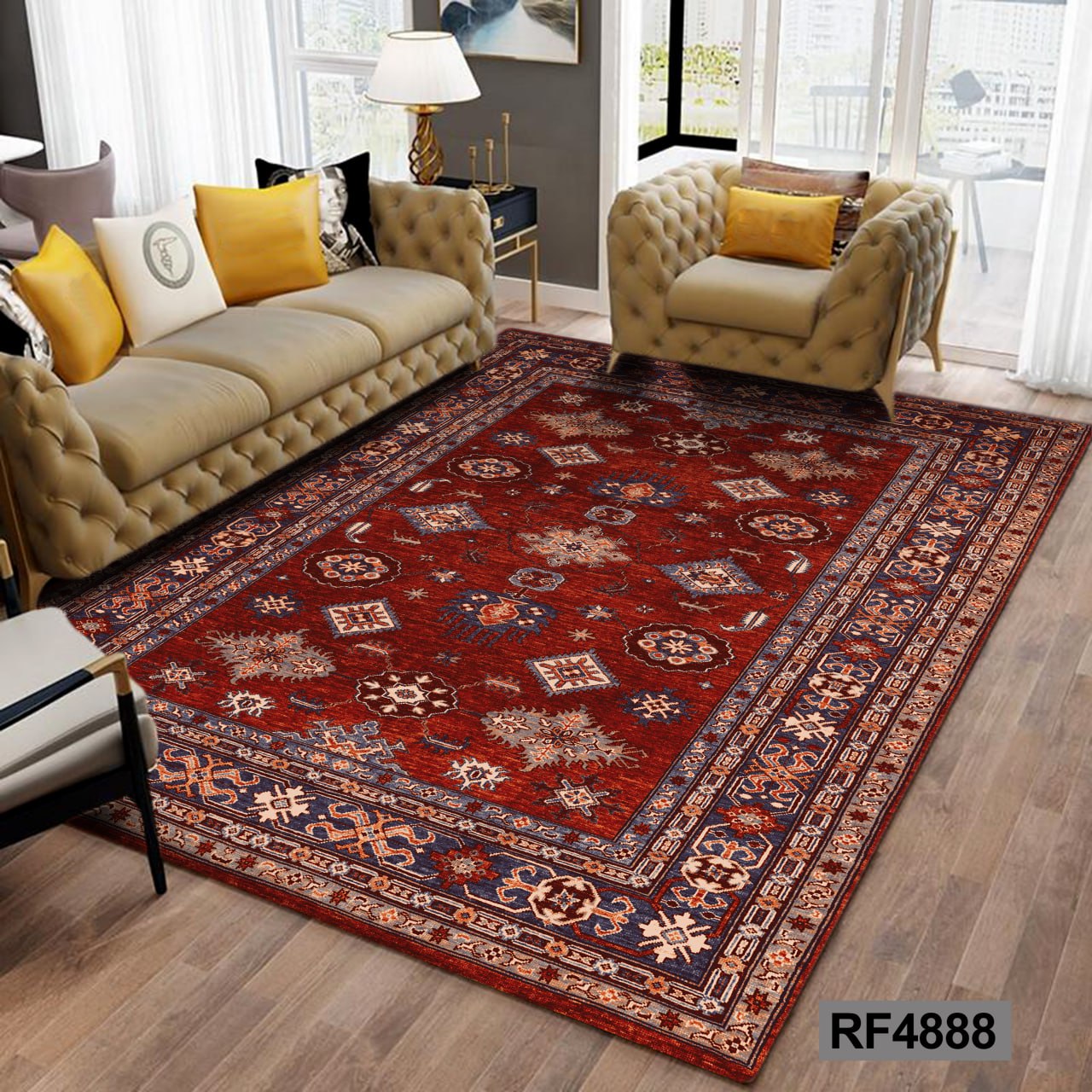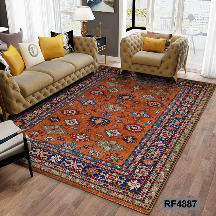 روفرشی مخمل کشدار | طرح سنتی سرمه ای و نارنجی (دارای تنوع)