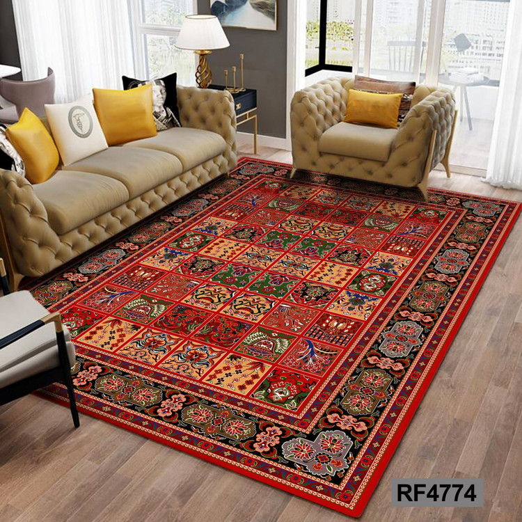 روفرشی مخمل کشدار | طرح سنتی قرمز و کرم