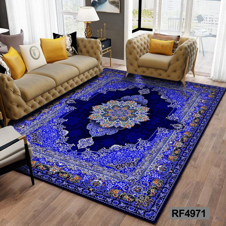 روفرشی مخمل کشدار | طرح سنتی آبی و سفید