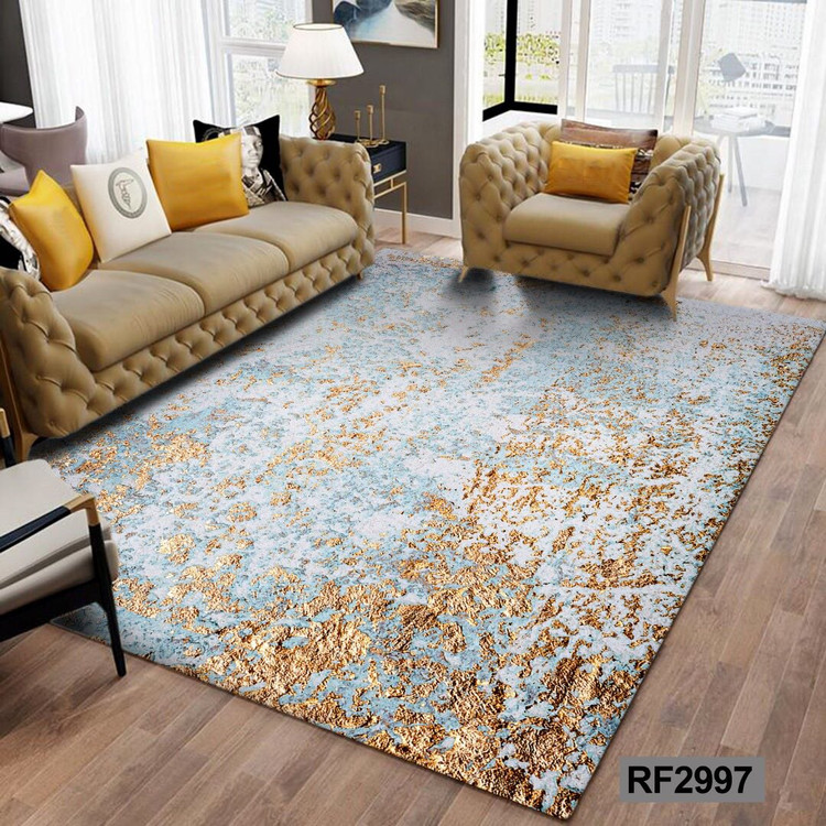 کاور مخمل کشدار فرش | طرح مدرن آبی، طلایی و سفید