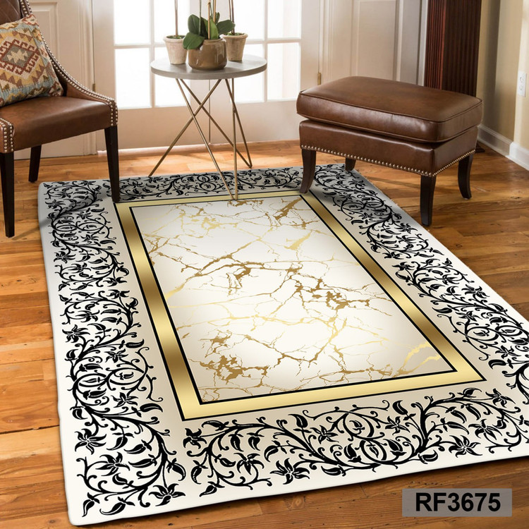 کاور مخمل کشدار فرش | طرح مدرن سفید و طلایی
