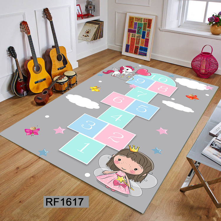کاور مخمل کشدار فرش طرح لی لی رنگ بنفش و آبی