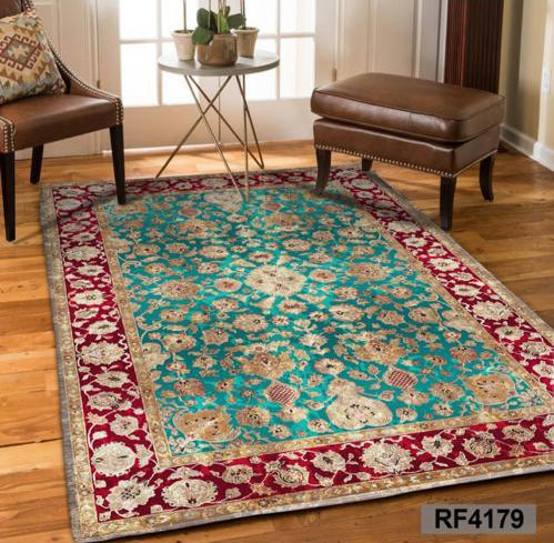 کاور مخمل کشدار فرش | طرح سنتی سبز و قرمز
