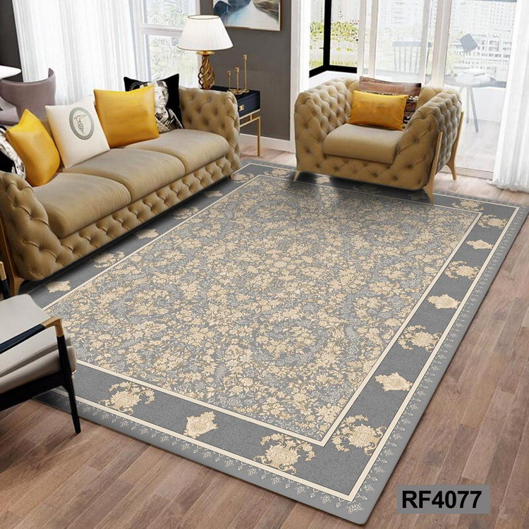 کاور مخمل کشدار فرش | طرح سنتی طوسی و طلایی