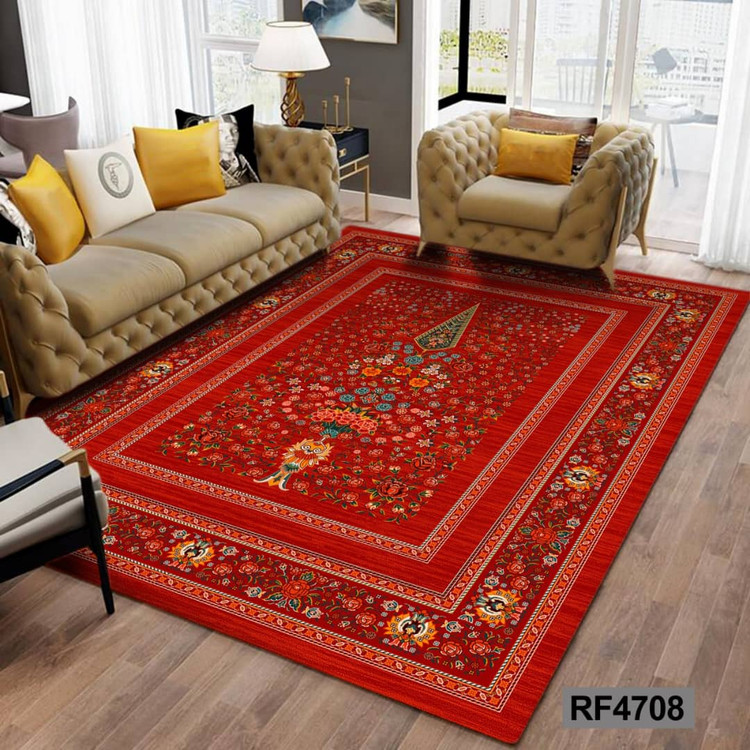 کاور مخمل کشدار فرش | طرح سنتی قرمز
