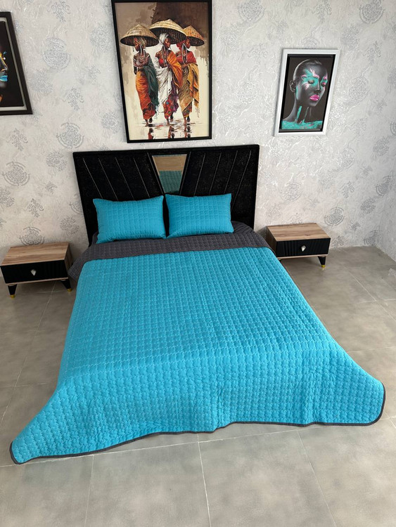 ست پنبه دوزی طوسی و آبی