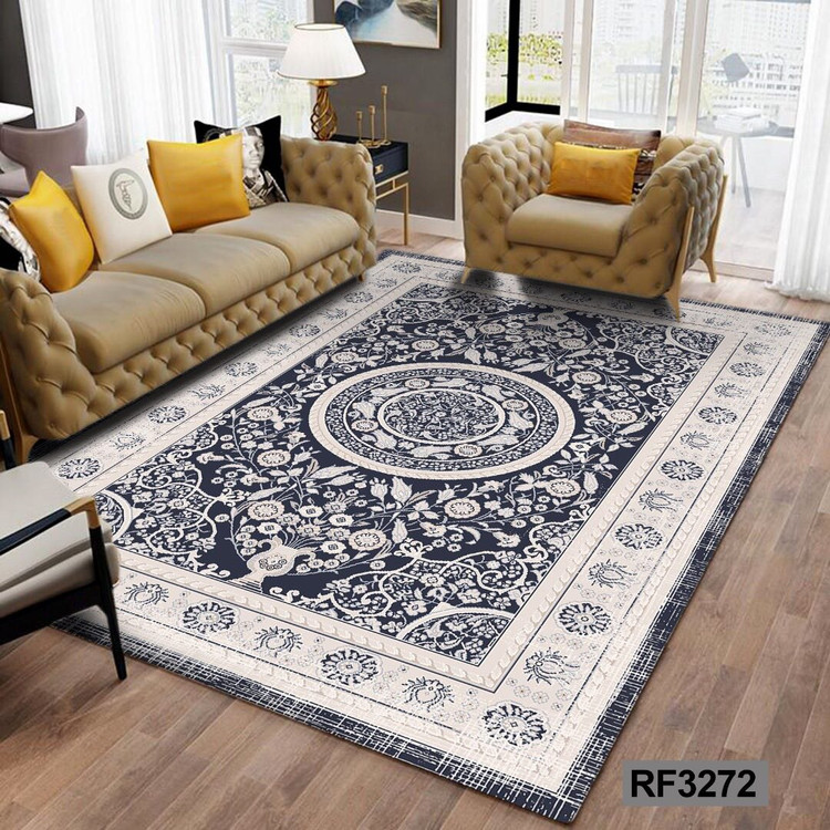 کاور مخمل کشدار فرش | طرح سنتی سفید و طوسی