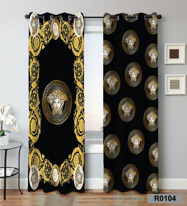 پرده مدرن طرح ورساچ مشکی و طلایی
