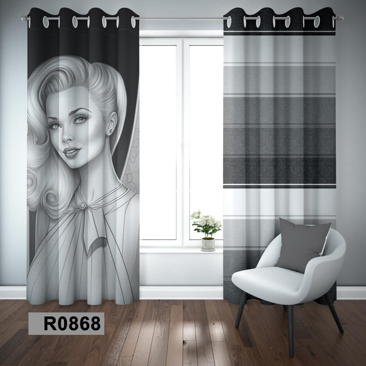 پرده مدرن طرح دختر سیاه و سفید (طرح 4)