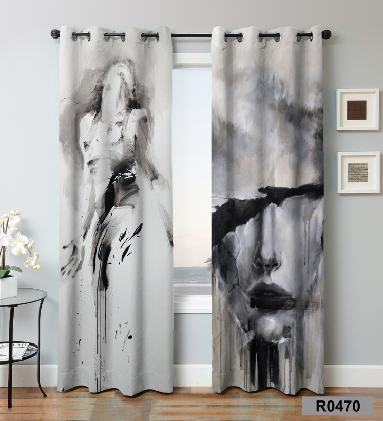 پرده مدرن طرح نامرئی سیاه و سفید انسان